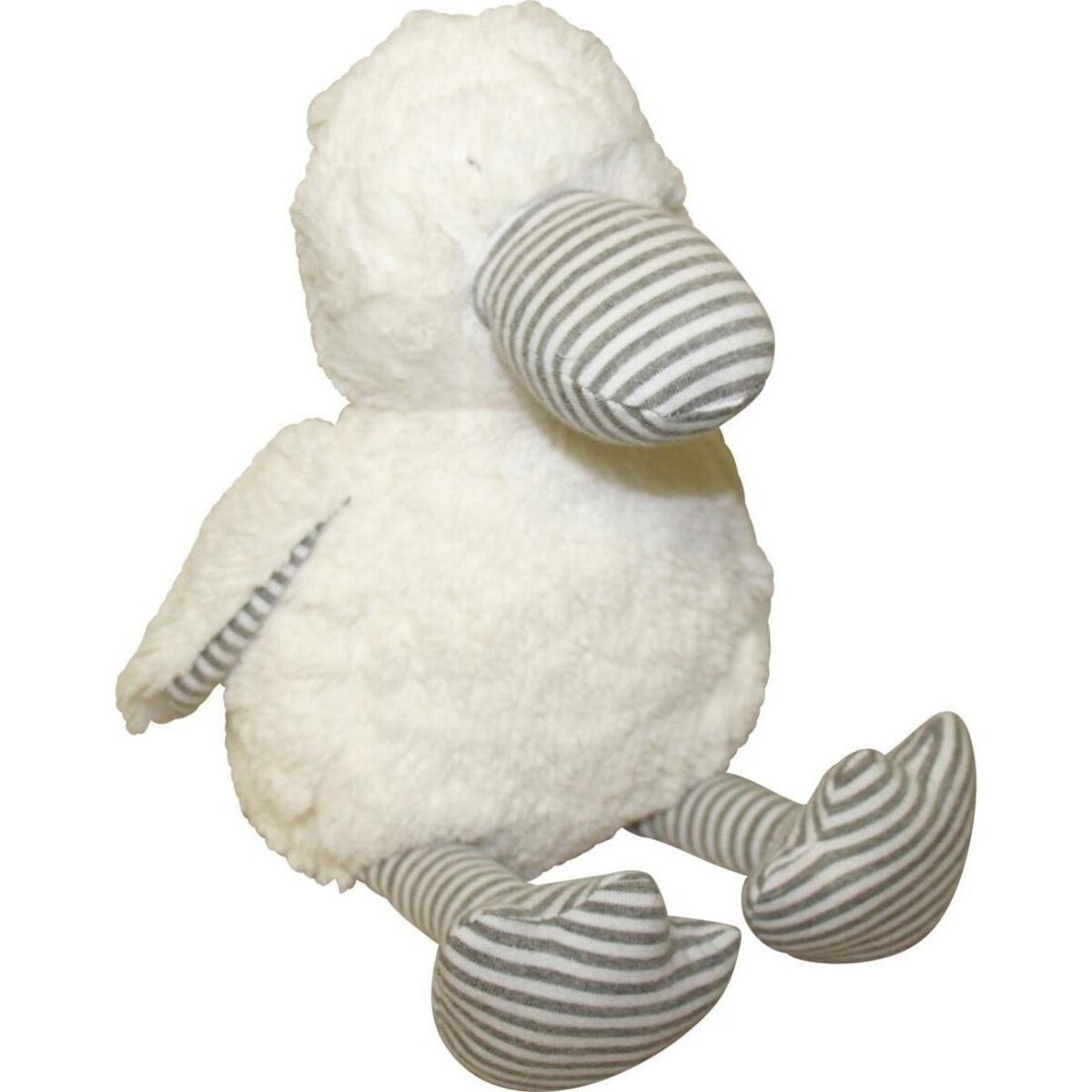 Be it at home in the play pen, the bed - a napping companion or the back seat of your car, soft toys add so much love and relaxation to any space you feel like creating for your child. They offer them soft comfort, hours of imaginative play and of course the most cuddlesome of company and thus little ducky does all of that with his greatly stylized look. The white coloured tiny ducky with its furry exterior has wings with an underside of stripy fabric that is repeated over the beak and the webbed feet. This tiny bit of detailing along with the shape of its beak give it that lovely definition, so unlike other ducks one might come across in toy stores. Handmade to be soft and plaint and extremely huggable - it will rule the roosts as the most attractive huggable creature amidst the array you might already have in the collection. 24 cm in height, the tiny ducky sits solidly on its back and thus could be placed atop cupboard with ease.
