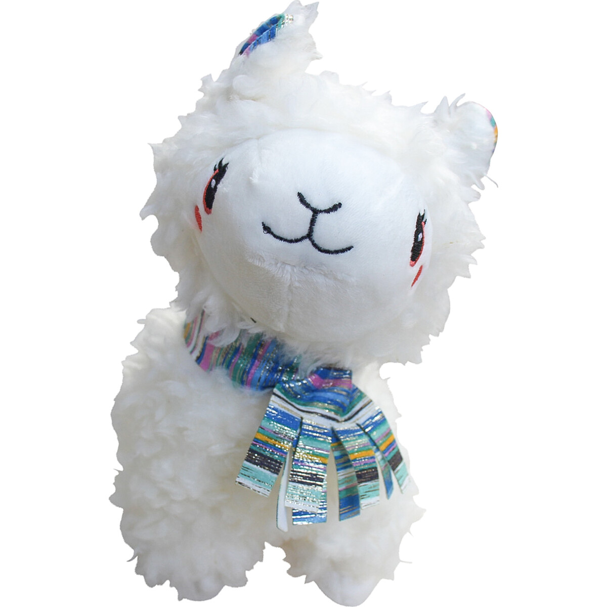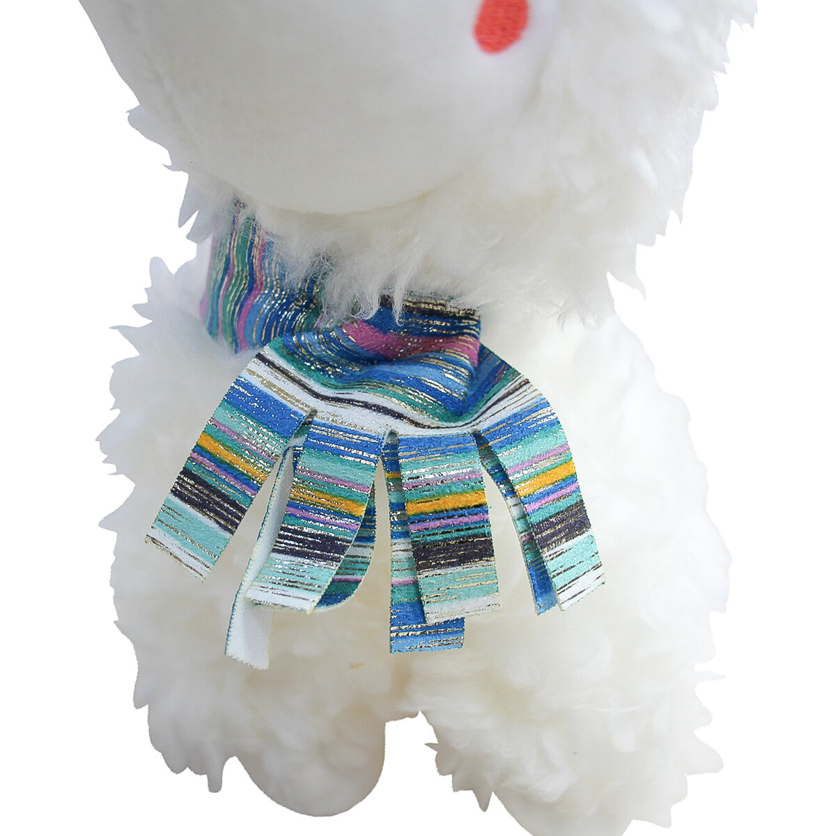 Llamas have regaled everyone with their cute little antics-the spitting-those large eyes that seem to speak of their naughty nature and the fact that they come from lands that are faraway ad filled with a certain adventure-this llama too carries the same back story which makes it very presence so enigmatic, made from super sift white plush , it has been given this multicoloured collar that adds to its superb looks. Not too large, it should easily be able to balance on table tops, little shelves and of course simply lie around in all those spaces where your kids like to play. Will retain its softness despite much cuddling and playing, easy to wash and clean to renew its looks. Its dark eyes, pert little head that is arched upwards give sit very curious kind of an expression adding to its attractiveness.