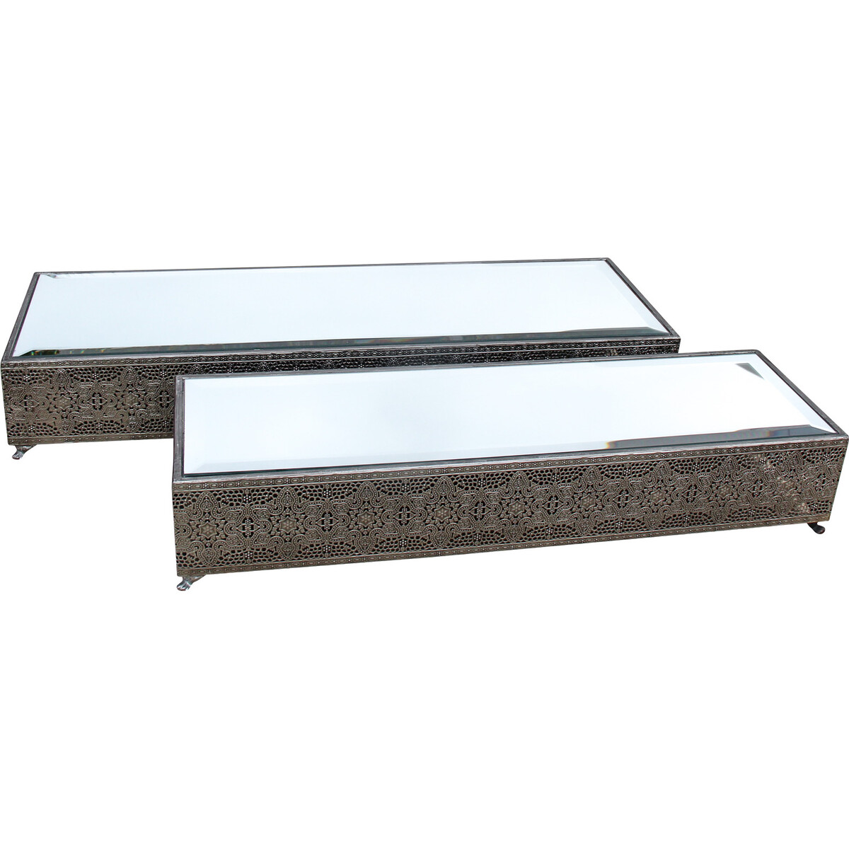 The Podium Rectangular S/2 Mirrored A/Silver is made of finely chiselled crystalline mirror with clear reflectiveness and a smooth finish. This mirror is framed by an incredibly stylish metal frame with a look of mystique and extravagant craftsmanship. And it has four ergonomic legs made of the same equally sturdy metal so as to ensure perfect placement on all flat surfaces. Apart from being a d?ɩcor item that would add a touch of glamour to every d?ɩcor setting, it can also be used for a variety of other creative reasons. It can be used like a tray/table on which drinks and snacks can be kept while guests or family members munch it while seeing a movie. Colourful glowing candles in candle holders can also be placed on top to enhance the aesthetic appeal of living rooms and bedrooms.