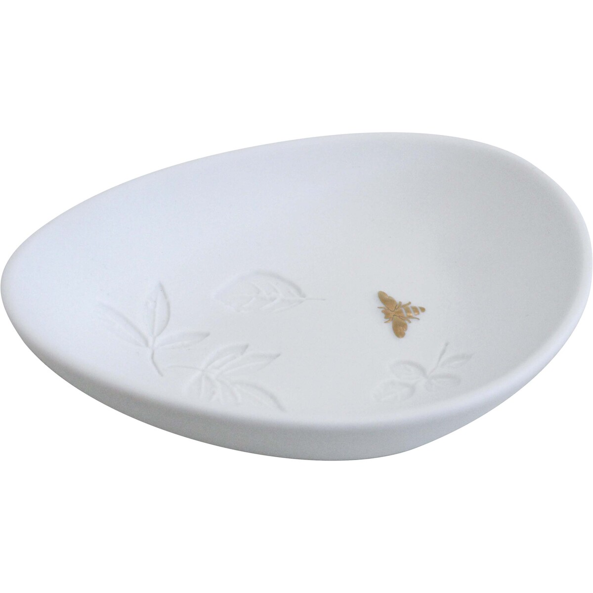 The Porcelain Bee Bowl stands out with its enchanting design featuring embossed leaf patterns and a delicate, intricately detailed bee that adds a touch of nature-inspired beauty to the piece. The absence of colour enhances its timeless appeal, allowing it to seamlessly integrate into a myriad of home or office décors, from modern minimalism to rustic charm.