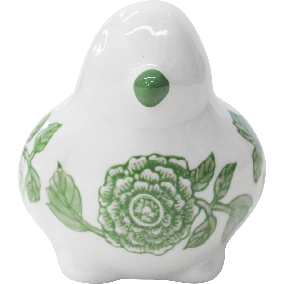 Porcelain has an ancient artisanal culture backing its creation and with its inclusion in your décor you would be creating this adorable yet vintage appeal that is reminiscent of farm and country kind of charm. the smooth exterior of the little bird is gorgeously adorned with a pattern in a soft green hue. The tail, head and beak of the little birdie makes this piece all the more attractive. The delicate colour combination of white and green is a delight when seen om the smooth surface of this high glaze artefact. Make a combination of several such tiny birds-use them as paper weights or simply like an accent along with other porcelain figurines and make an elegant décor statement.