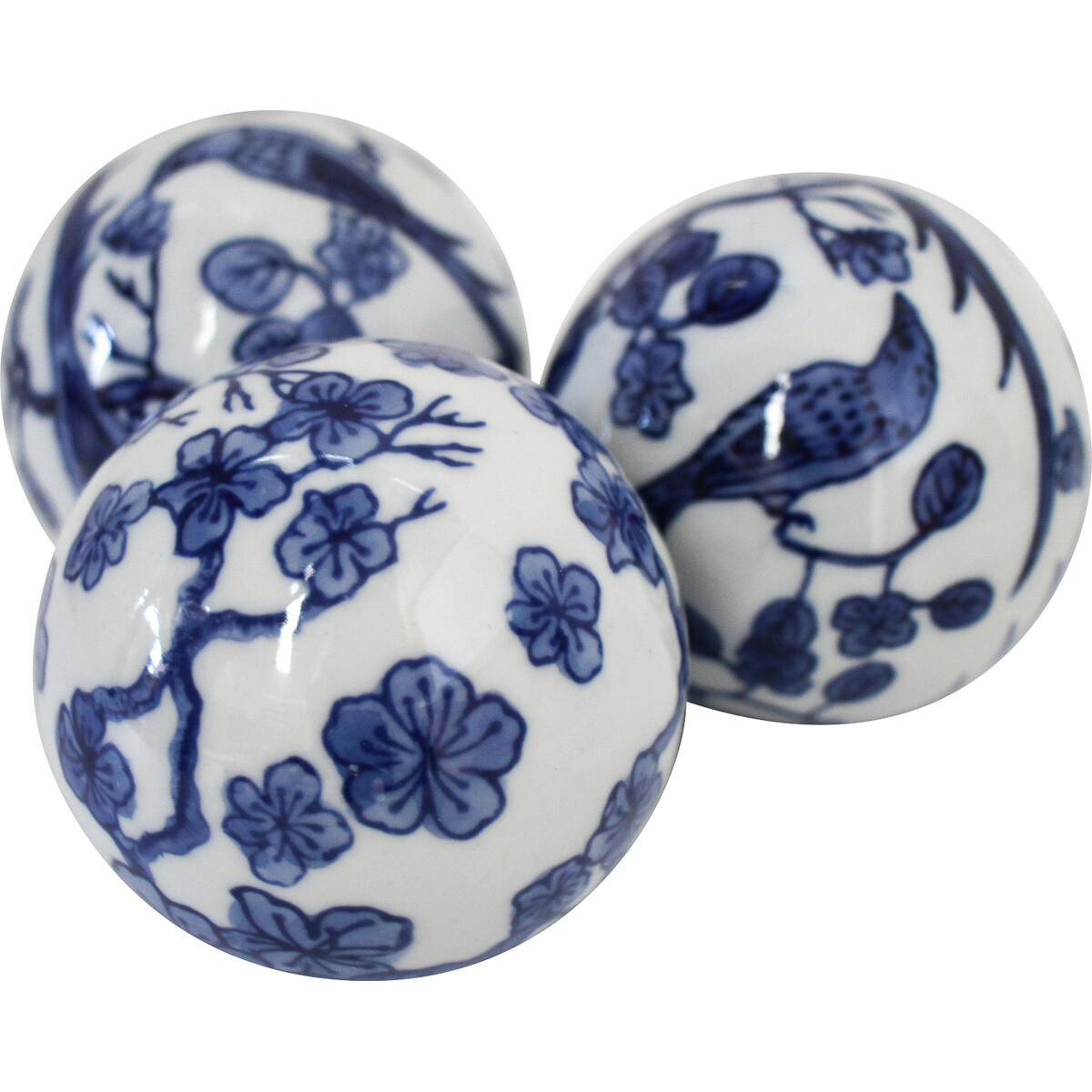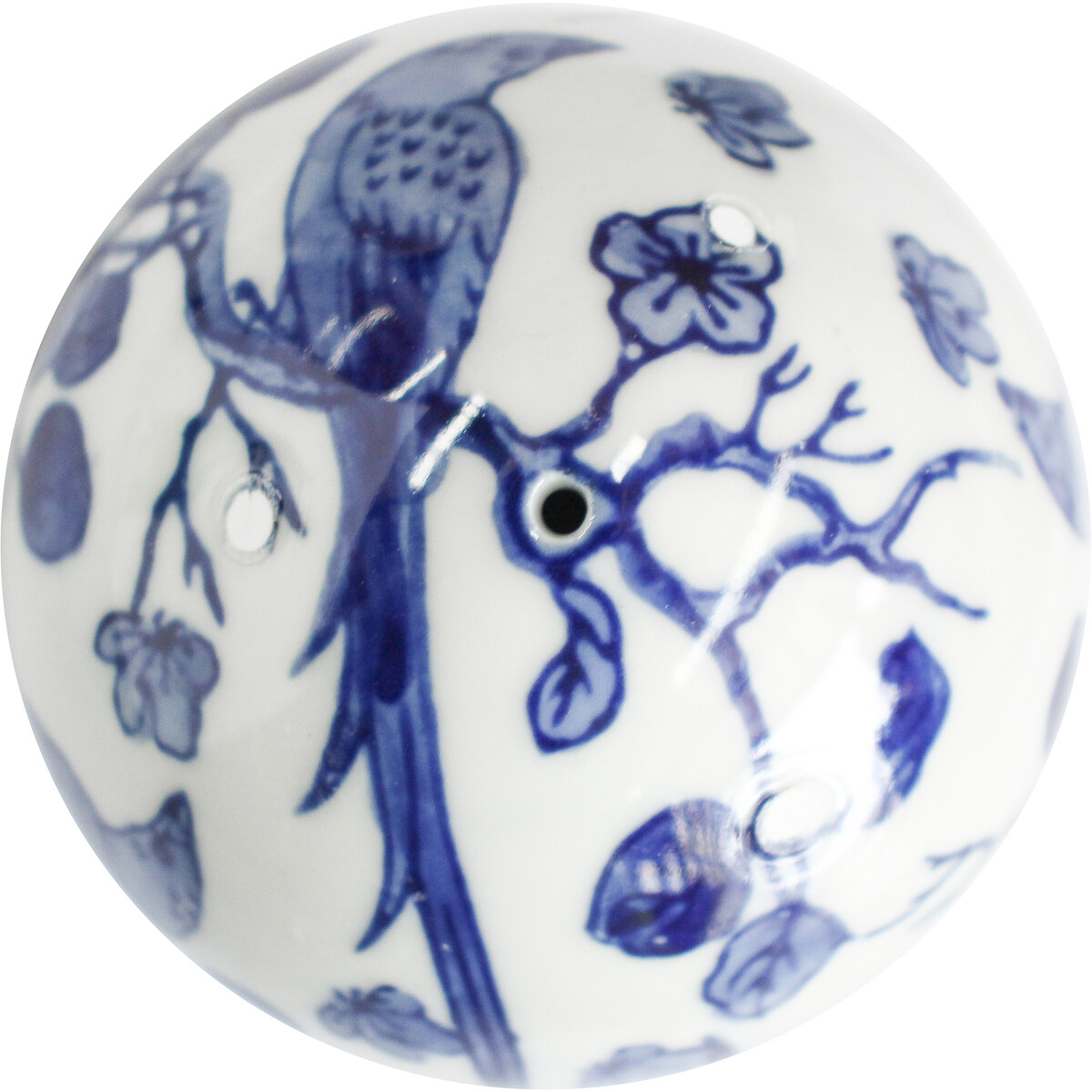 The Porcelain Blossom Balls Mix S/3 is artfully crafted in in a perfectly circular form with a dimension which measures 7 centimetres in length, breadth and height. It is moulded using top quality porcelain material which is moulded and glazed to a smooth, glossy finish. After this, each of these balls is then carefully hand-painted which is why there might be a slight imperfection in its painting. The painting showcases an appealing image featuring birds and flowers all glazed in blue.