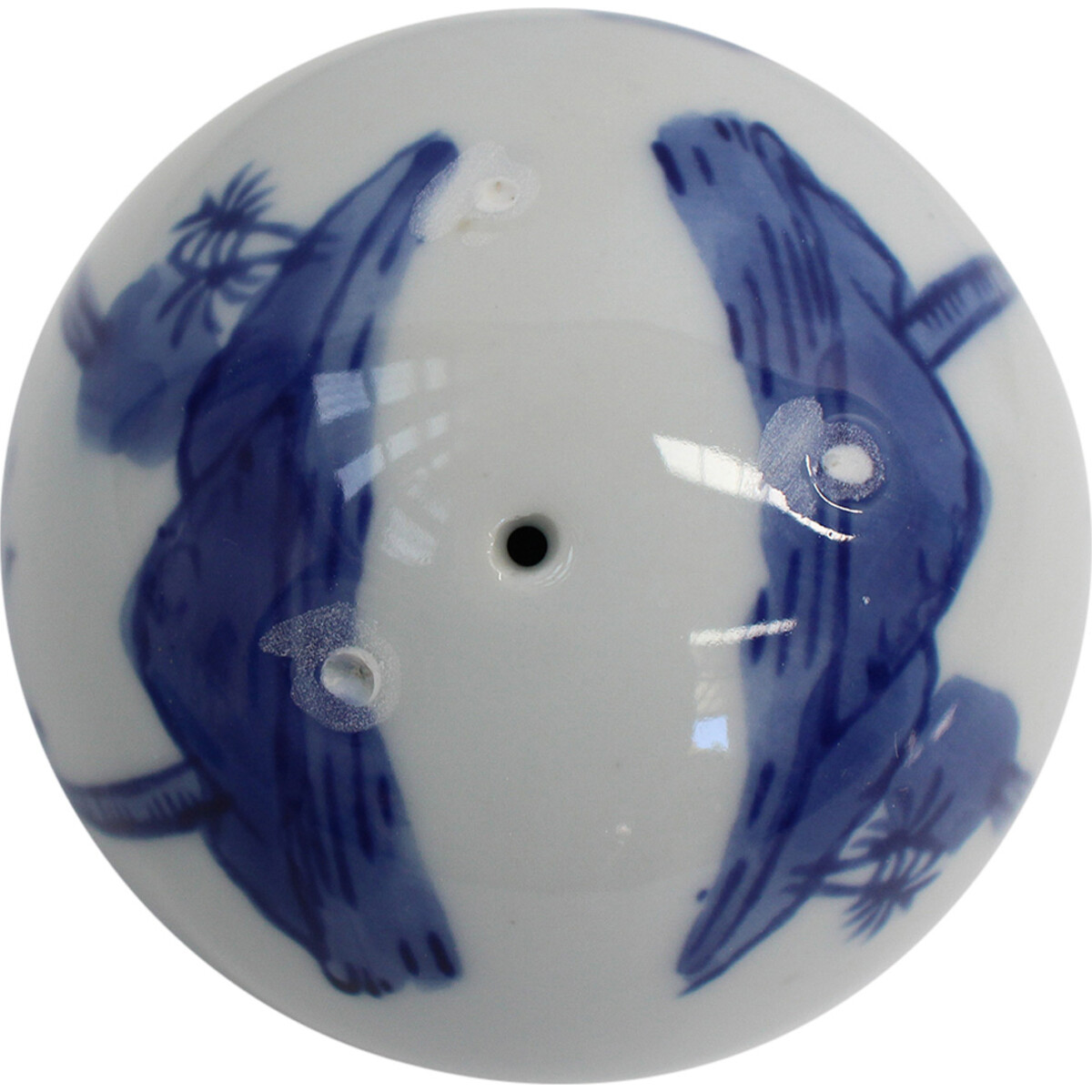 There are a host of decorative uses in a variety of decorative setting for this Porcelain Palm Balls S/3. It can be used in both interior and exterior decoration of homes, offices, shops, hotels, restaurants, schools, government institutions and even corporate buildings. It is especially suited for the decoration of public places due to its generally agreeable motif of glazed palm trees motif. The set of three balls sport immaculate white lacquered over which blue glazed palm trees and flying birds are glazed.