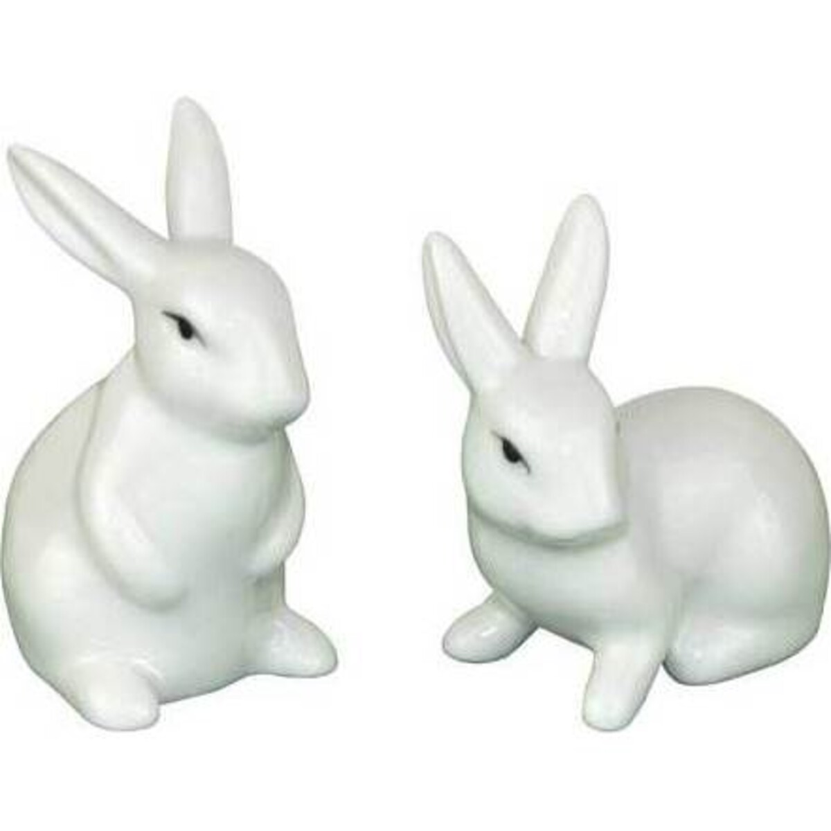 The set of bunnies in two separate postures makes them seem so very adorable. Crafted from porcelain, they have the perfect proportionate features and would be loved by all those who like collecting animal collectibles among other things. A little decor item, these figurines would also make a great add on to the nativity scene or the collection of other tiny sculptures. At the most each has a height of about 6 cm to about 7 cm and a diameter of 6 cm. Tiny yet endowed with life like character, they would also look great inside terrariums or as part of smaller arrangements one would like to make in the children's room's mantelshelf. The children would love the tiny rabbit paws, the fluff of the bunny's tail and the long ears that are its most definitive features.