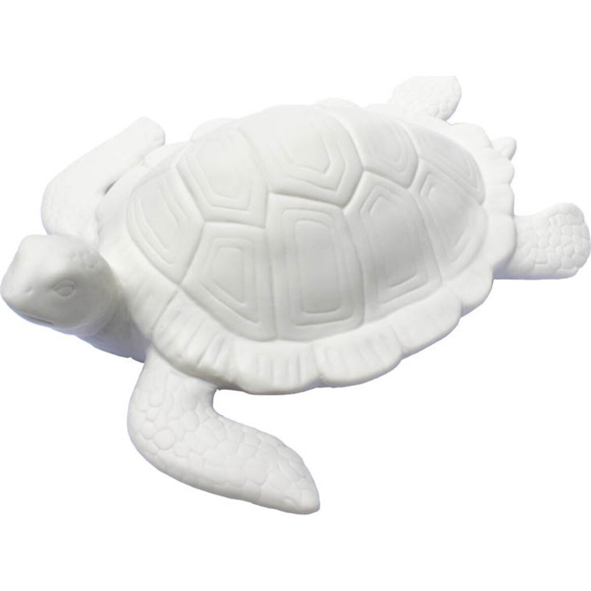 Mister Turtle does not stay on the land like you or I. He likes to live in the sea where he can swim around with his friends. He carries his house around with him on his back, so he can go where ever he pleases with few consequences. Sea turtles grow to be very old and wise. Sometimes they come to visit on the beach, but they can only move very slowly across the land. When they are swimming in the ocean, which is most of the time, they move as fast as race cars. Some of them are big as cars too. Try placing Mister Turtle amid the plants in your container garden or on a shelf to bring a little sea turtle to your home.