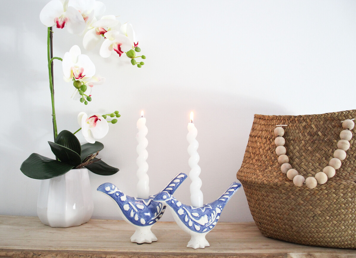 We always get a smile when these little Portuguese Bird Candle Holders come in - it’s partly the bright blue and white hand-finished glaze, and partly the playful shape. The design is classic but quite contemporary with its clean lines, stylised wings, and delicate details. We find the ceramic adds a handcrafted quality to every piece that easily matches Mediterranean decor, or sits just as nicely in farmhouse and coastal themes. The finish always varies a little - sometimes a hint more white or blue in places - which creates a batch of unique miniatures that still sit together perfectly on display.