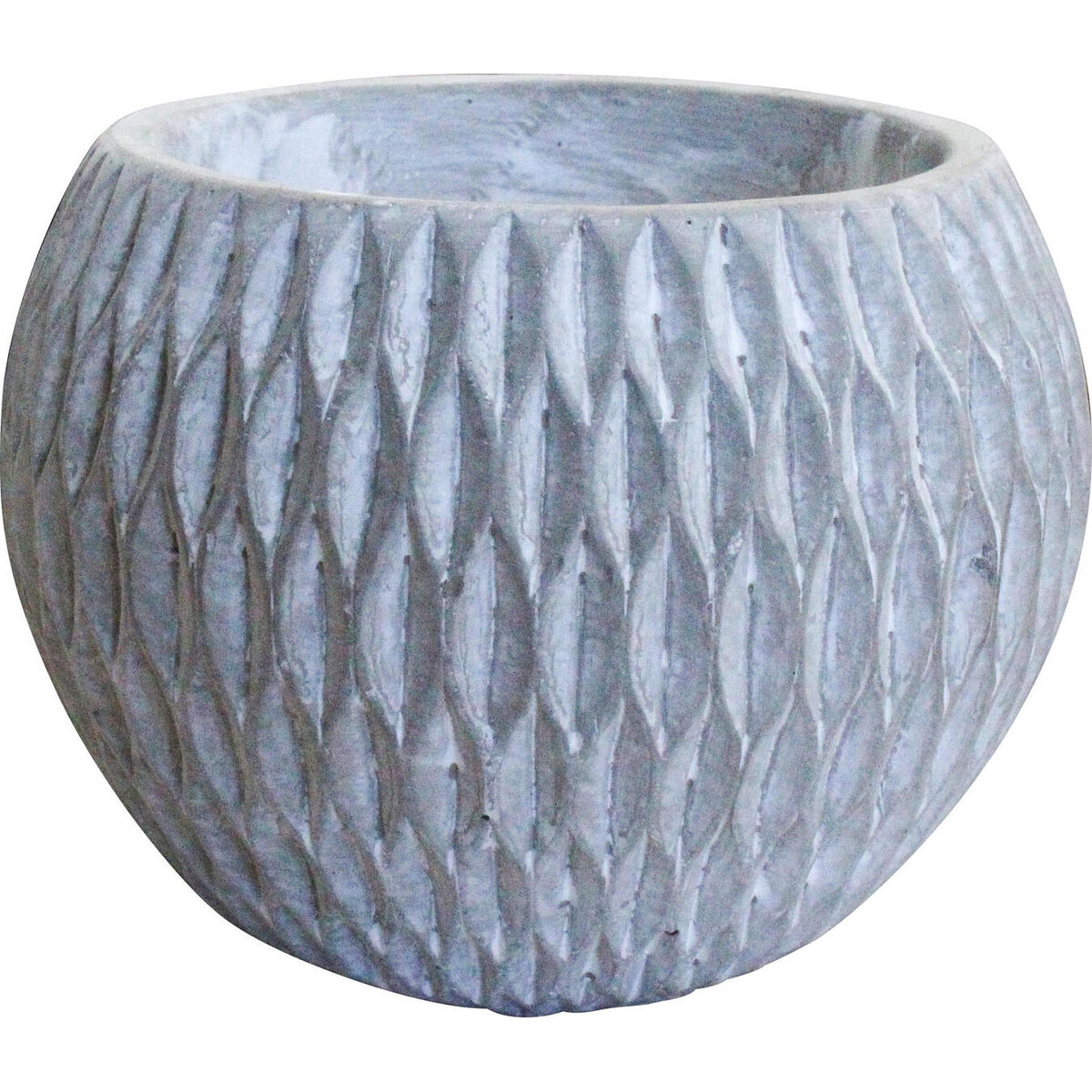 Made from white coloured cement-this sturdy build pot has the kind of looks that will help give your plants that much needed displayable look. The sturdy look of the pot adds to its charm-the rusticity helping build in that look of minimalism as well. The exterior of the pot has a textured design-ribbed and beautifully simple-it will give the greens the much-needed protected space and help create that pretty little green corner you always wanted. The height of the pot is 11 cm while its maximum dimeter is 13.5 cm making it large enough for small to medium sized plants. Add several of these and create that layered look corner with all kinds of plants-short of long stemmed alike. The curved body and the small little round base does wonders for keeping this pot well balanced despite the height of the plants placed in it.