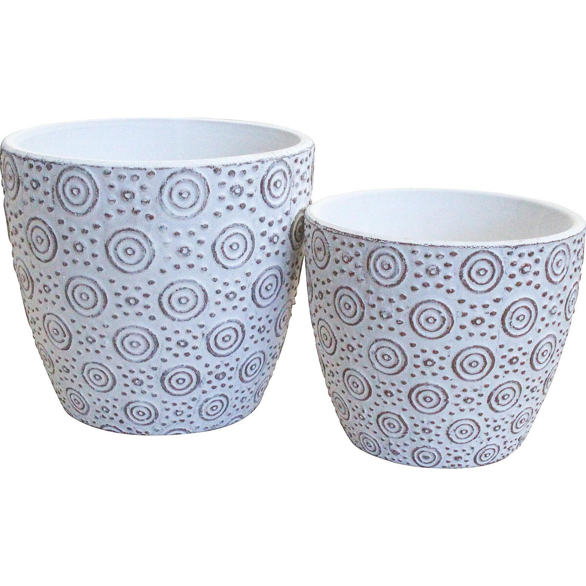 Sturdy cement made bodies gives this set of two pots remarkable strength and style. Created to impact your saces as much with its sturdy feature as with its durability, this is a delightful looking option created from cement and given the delicate kind of spiral design on the exterior. The smaller of the two is 9.5 cm tall while the larger one is 11.5 cm tall - and both have diameters that is higher then the height. Giving them thus a certain kind of uniqueness and also the depth and dimension to be able to make an impact. Will be quite well balanced even if the plant in the happens to be tall - hence the width counts as an important feature. The circular pattern too looks quite interestingly different. The white of the pots will combine beautifully with the green of the plants adding that refreshingly different look to them.