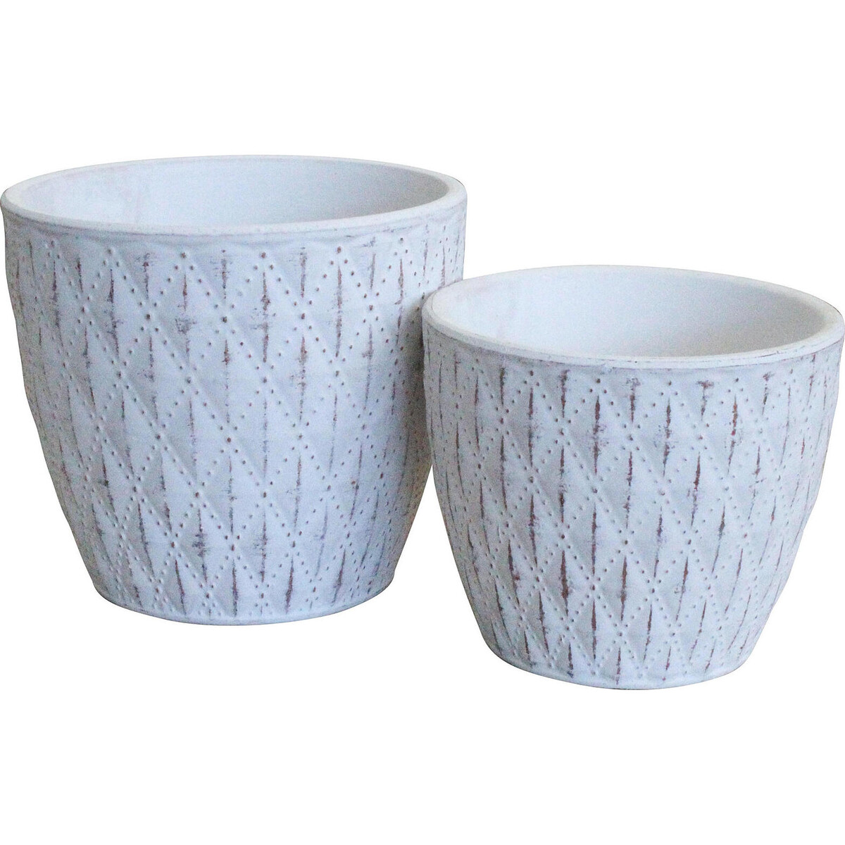 The look of white with green is a much celebrated and loved combination and bringing you the same gorgeous colour combination of course is Lavida. This set has been crafted from superior quality cement that has a wonderful matt glow - and will be able to help make your potables plants that all - important style check. While the larger of the two is 11 cm in height the smaller one is 9 cm with wide open structures, they are bound to eb adequate for your small to medium height plants - once potted will be ready for window sills or the floor alike. You could prop them up on stands and the likes. The textured design on the body adds to their very organic kind of look that blends in well with all kinds of spaces. The white cement used will make this a rather sturdy and long - lasting option for your plants.