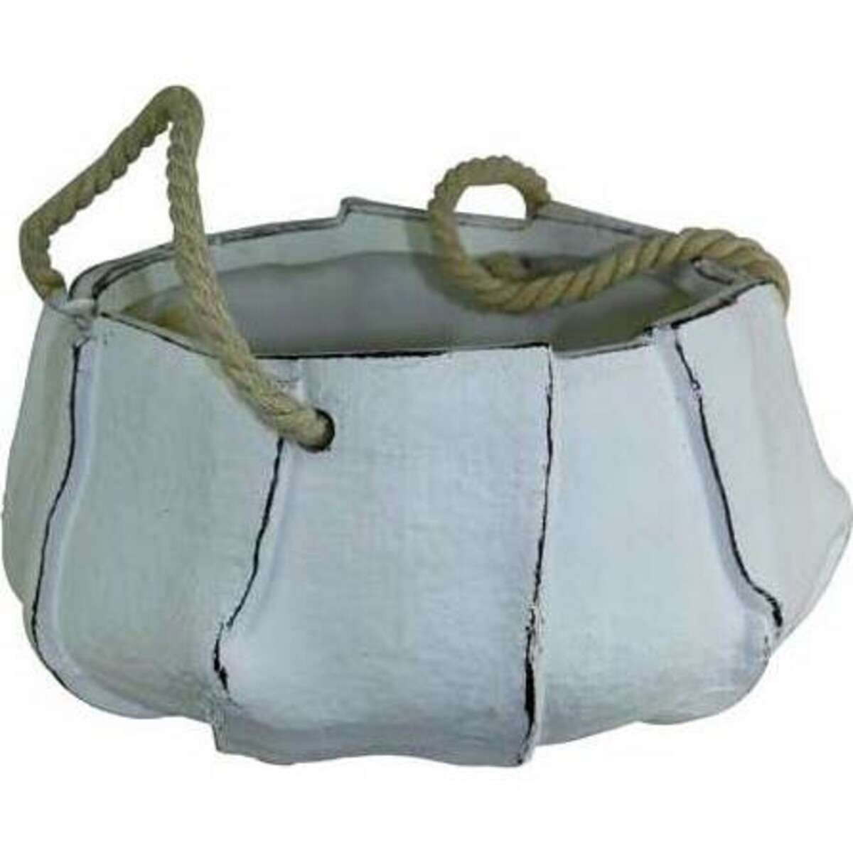 Giving ceramic designs a fresh new look and feel is this pouch shaped ceramic pot that has rope handles to help lift it easily. The height of the pot is about 10 cm while its diameter is about 18 cm .Its colour is rather rusty looking having being given an antique half polished look from the outside. Its inside surface is smooth and quite evidently designed even for serving edibles. One could simply use it to stick in some fresh herbs bought form the super market or to serve some hot soup as well. A versatile piece that will be as much a utensil and serving owl as it would be a planter. The rope handles do add a natural dimension to its looks. The folds on the canvas like exteriors has been marvellously created with real expertise and would be its design highlight. Great for gifting or as an addition to one's own collection of unique pots and pans.