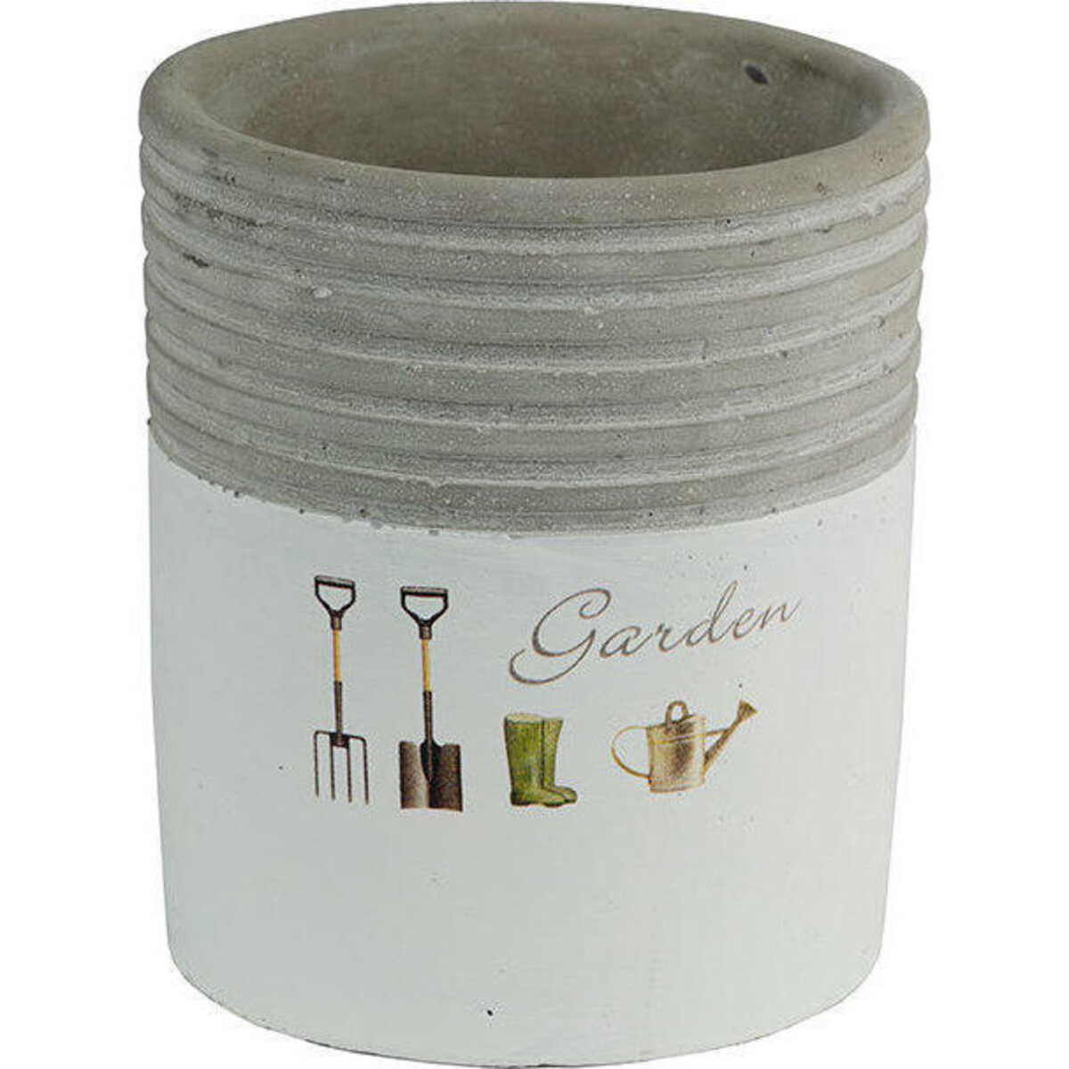 While for many, home decor may restrict itself to articles in the indoors, there are many whose interest in gardening allows them to create a whole feel and vivacity of nature in the indoors with the help of indoor plants. While this does need a great deal of care in bringing up saplings to a healthy size, it above all needs a great pot in which the plant finds a great home and solid roots. The cement pot has a lovely smooth finish in its lower portion and covered in a white coat of paint with tiny little images of gardening tools and all those articles which would gladden a gardeners' heart. A creative way to help a plant look prettier than it already is. The planter should be durable and sturdy and see you through many years with a perfectly healthy foliar or flowering plant finding its forever home there. Such planters are especially useful when you wish to make it part of your balcony or indoor arrangement. The planter is about 14 cm tall with a diameter is 12 cm.