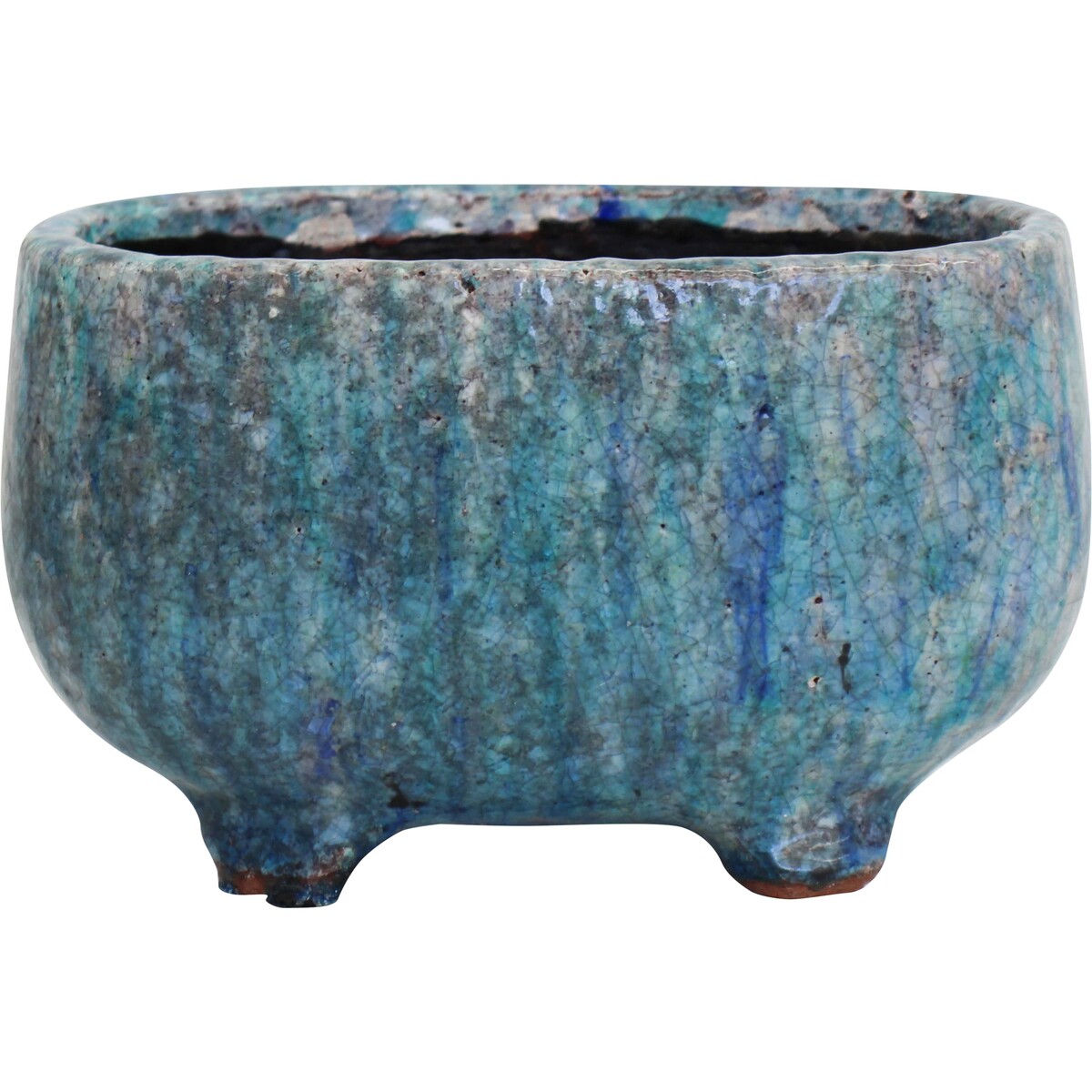 The Pot Long Sodalite derived the inspiration for its design from the mineral sodalite. This is why it has a distinguished visual appeal which you may be able to pinpoint except you are familiar with sodalite. The exterior of the planter is hand painted in a combination of blue, green and ash-white hues. The planter itself is made through the use of durable quality terracotta earthenware material.