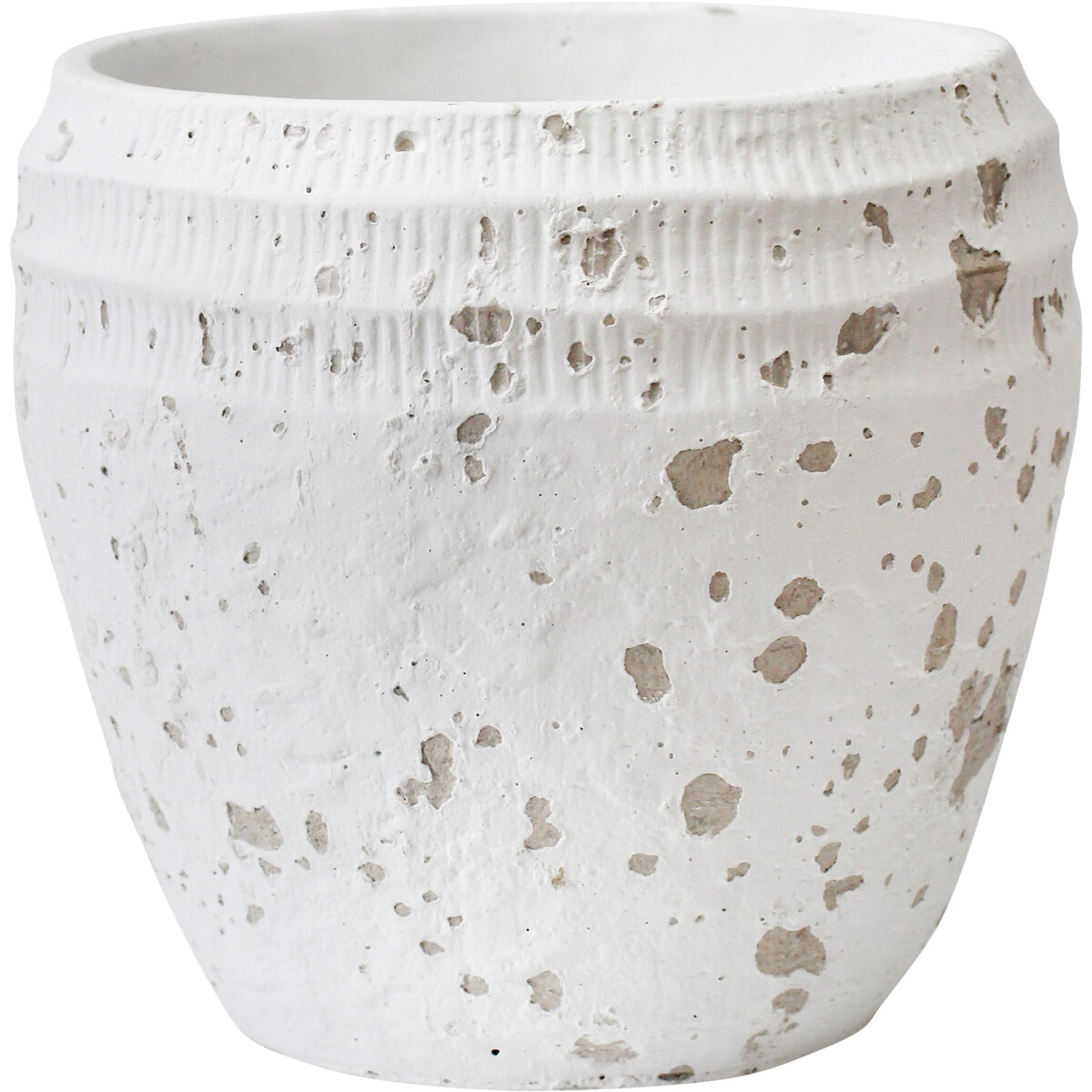 We’ve found our Pot Ribb Coast really stands out, especially if you want stock that feels familiar, classic, and still distinct enough to catch the eye. Our favourite bit is the honest, imperfect finish. This cement pot isn’t screaming for attention - which is probably why shoppers give it a second look. The ribbed top section has a lovely ringed detail and the whole piece is finished in white paint with an organic mix of chips, dimples and natural spots showing the grey cement underneath. We’ve seen this work across so many interior styles - boho, contemporary, coastal, warehouse-y converted homes, and even fits a slightly more tropical or beachy brief. Sized at 16.5x16.5x15.5cm it’s big enough for a medium houseplant but versatile enough for use as a container or even on kitchen benches for countertop essentials. Neutral and tactile - it suits family homes and professional settings too; think office desks or foyers. This one's casual but looks high quality - without fussing about it too much.