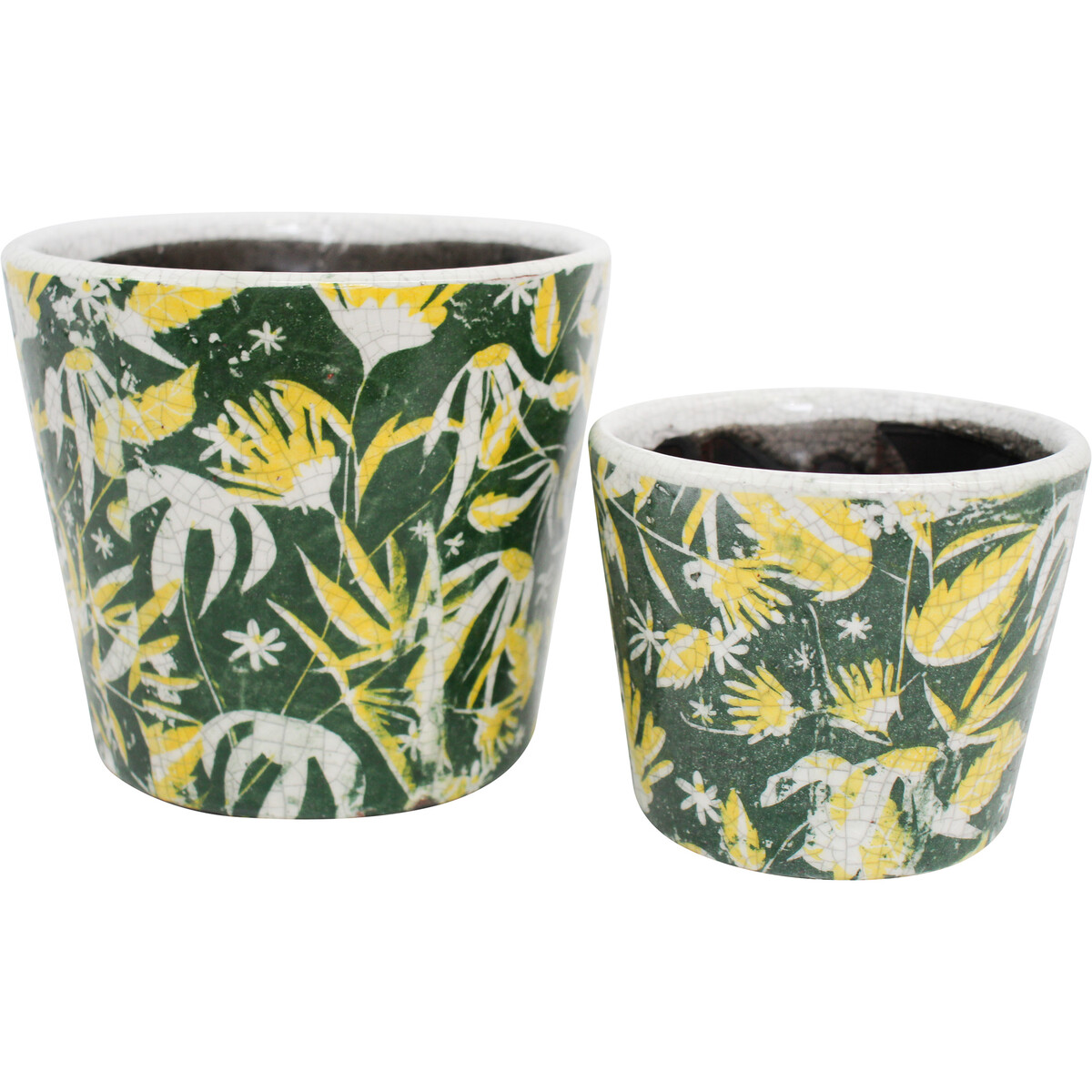The exterior of both pots contained in this Pot S/2 Natives is colourfully decorated with the image of a thick forest filled with trees and leaves. The large sized pot is made in a dimension which measures 16 centimetres in length, 16 centimetres in width and 14 centimetres tall. The small sized pot on the other hand, is made in a portable sized dimension which measures 12 centimetres in length, 12 centimetres in width and 10 centimetres in height. You can decide to sell it as a set or as individual planting pots.