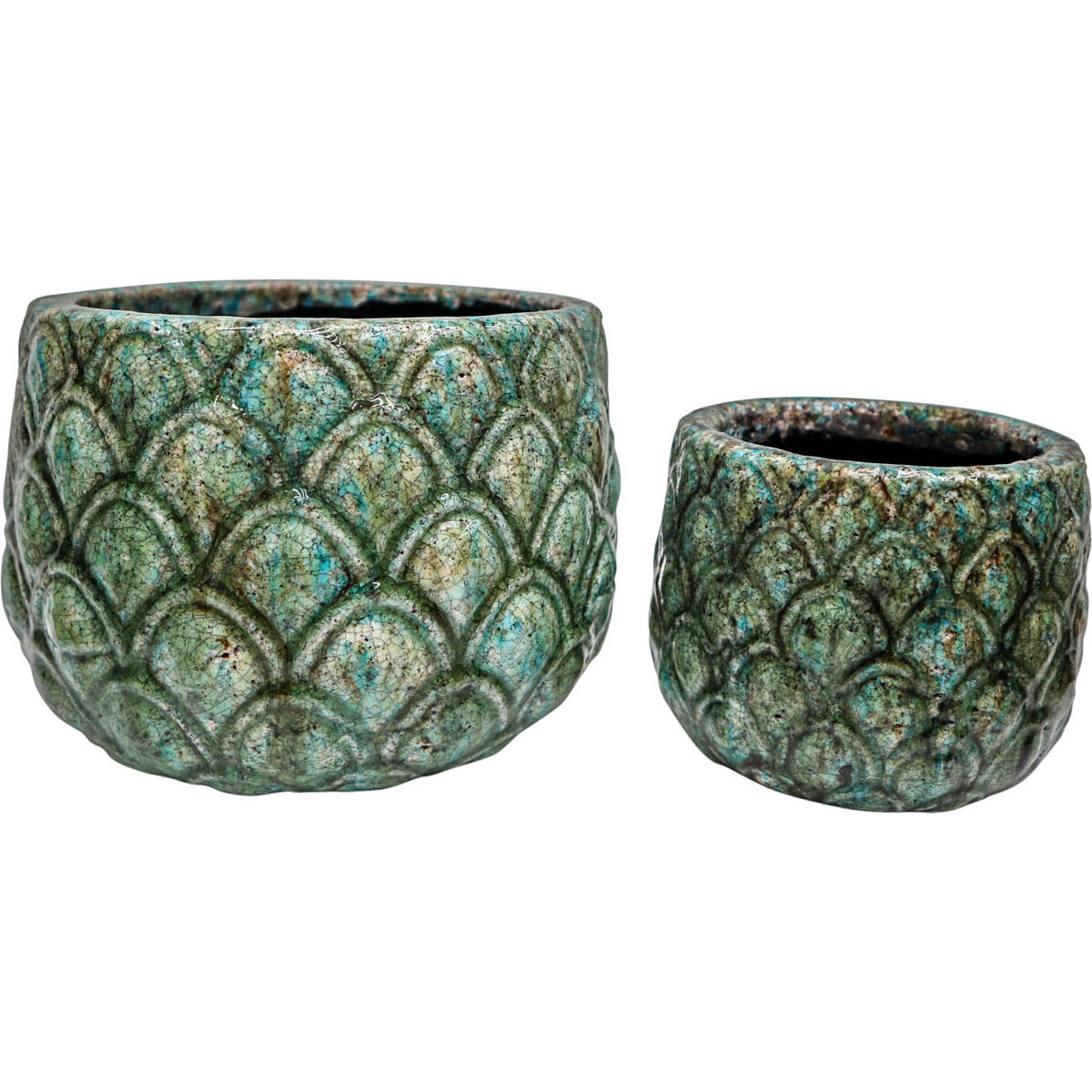 Suitable for use in planting several kinds of plants such as spices, vegetables, flowers, herbs, etc. the Pot S/2 Pineapple Ocean is indeed a practically functional planter that s made in two different sizes though with the same design. The small sized planter has a dimension measuring 16 centimetres in length, 16 centimetres in width and 12 centimetres in height. The large sized pot in this set however, measures 23 centimetres in length, 23 centimetres in width and 16 centimetres in height.