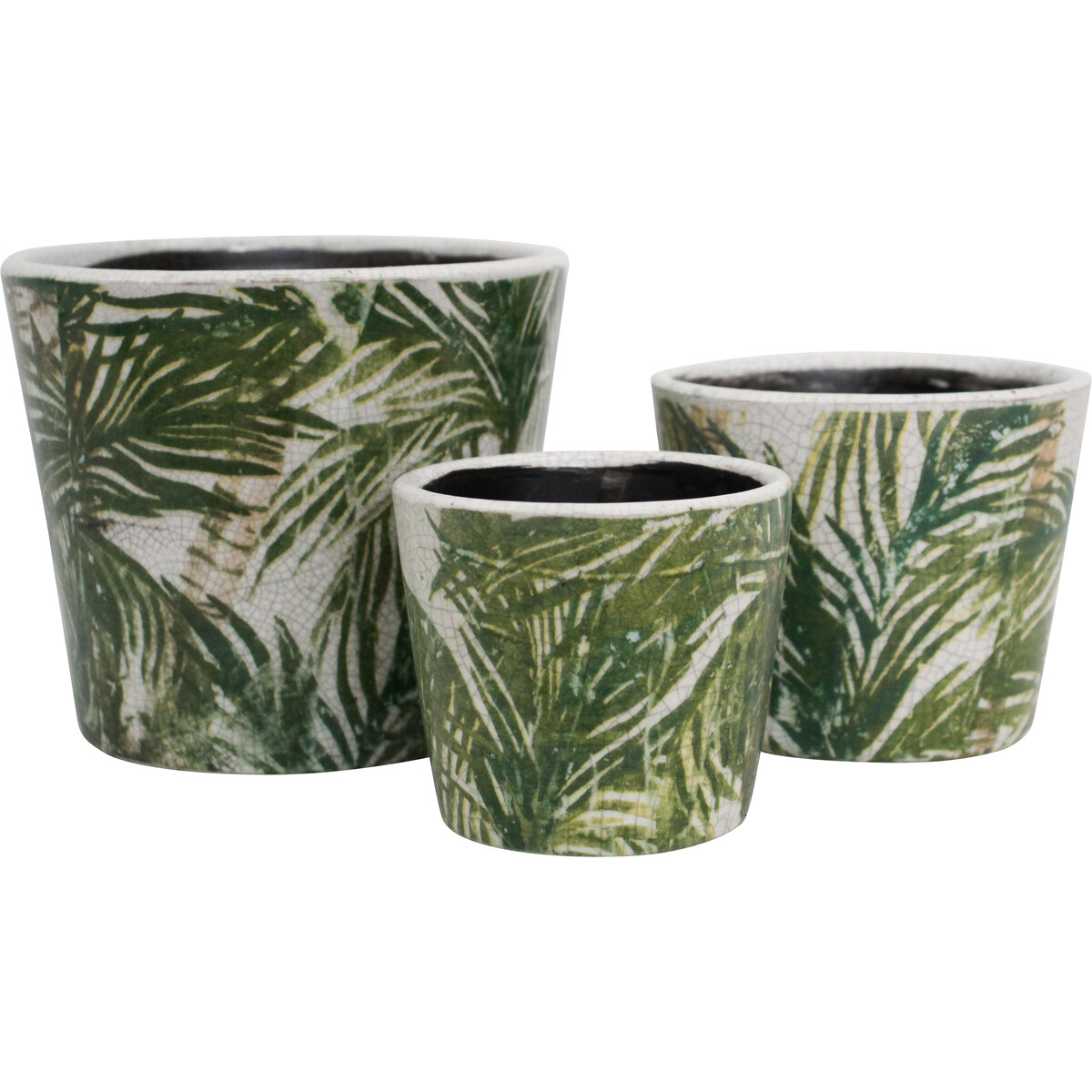 Why not give your customers this opportunity of growing just about any species of plants they so wish while at the same time, getting to decorating their living spaces and working spaces using this Pot S/3 Palms. Two things are especially notable with regards to this planter. The first is that it is sold as a set consisting of three differently sized planters. The second is the alluring palm tree painting which decorates the exterior of all three pots.