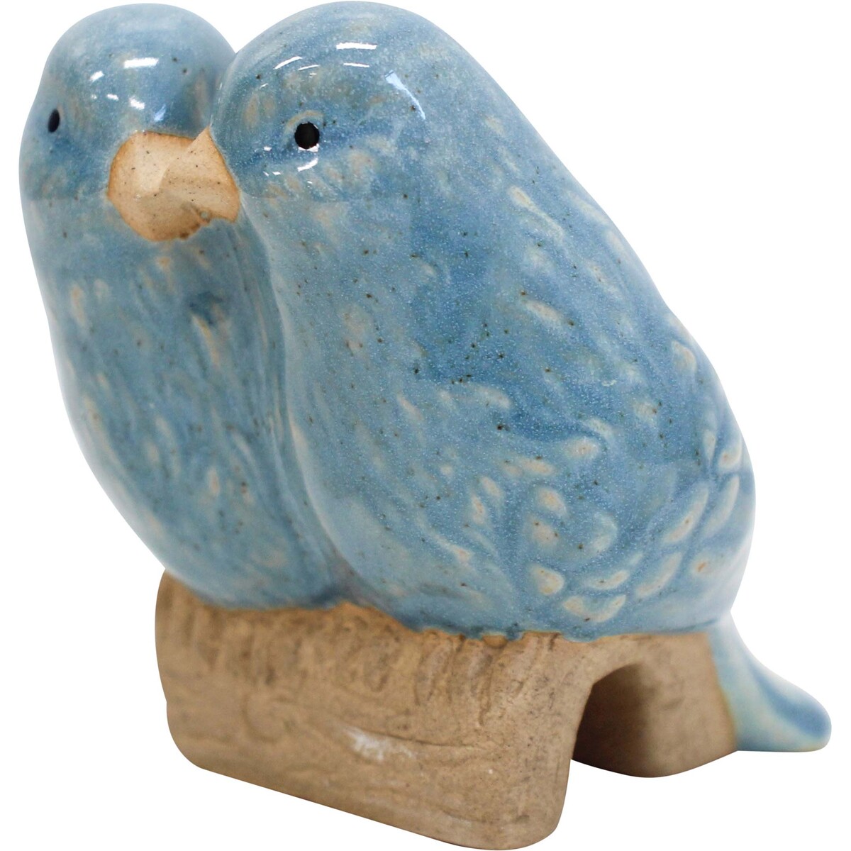 How cute is it to have love birds in one's garden? Pot Sitter Love Birds Blue features two vibrant birds in love to spread a serene ambience. This ceramic piece is characterized by a charming blue hue that is sure to brighten the outlook of any interior.