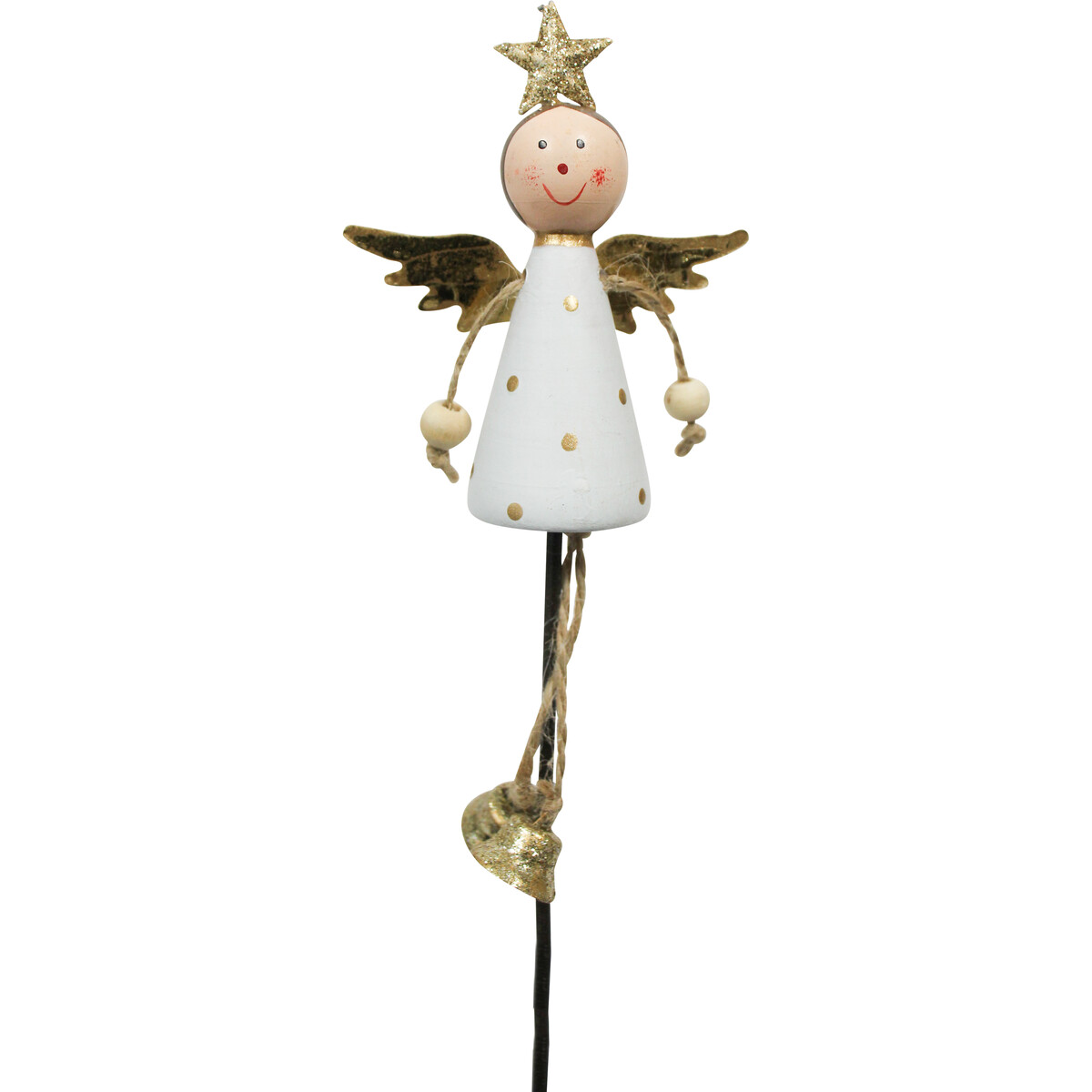 The Pot Stake Angel Star is an on-trend Christmas decorative item that was very recently added into our hugely selling stock of Wholesale Christmas Items. With each and every carton that you order today containing as many as 216 of these lovely angel themed pot stakes, you can be rest assured that customers would want to buy several in order to produce the greatest decorative effect. The angel stands tall via the help of a black, thin metal and has a golden star above its head. Its wings are equally hued in glossy gold while its stringed hands are beaded and its legs - golden bells.