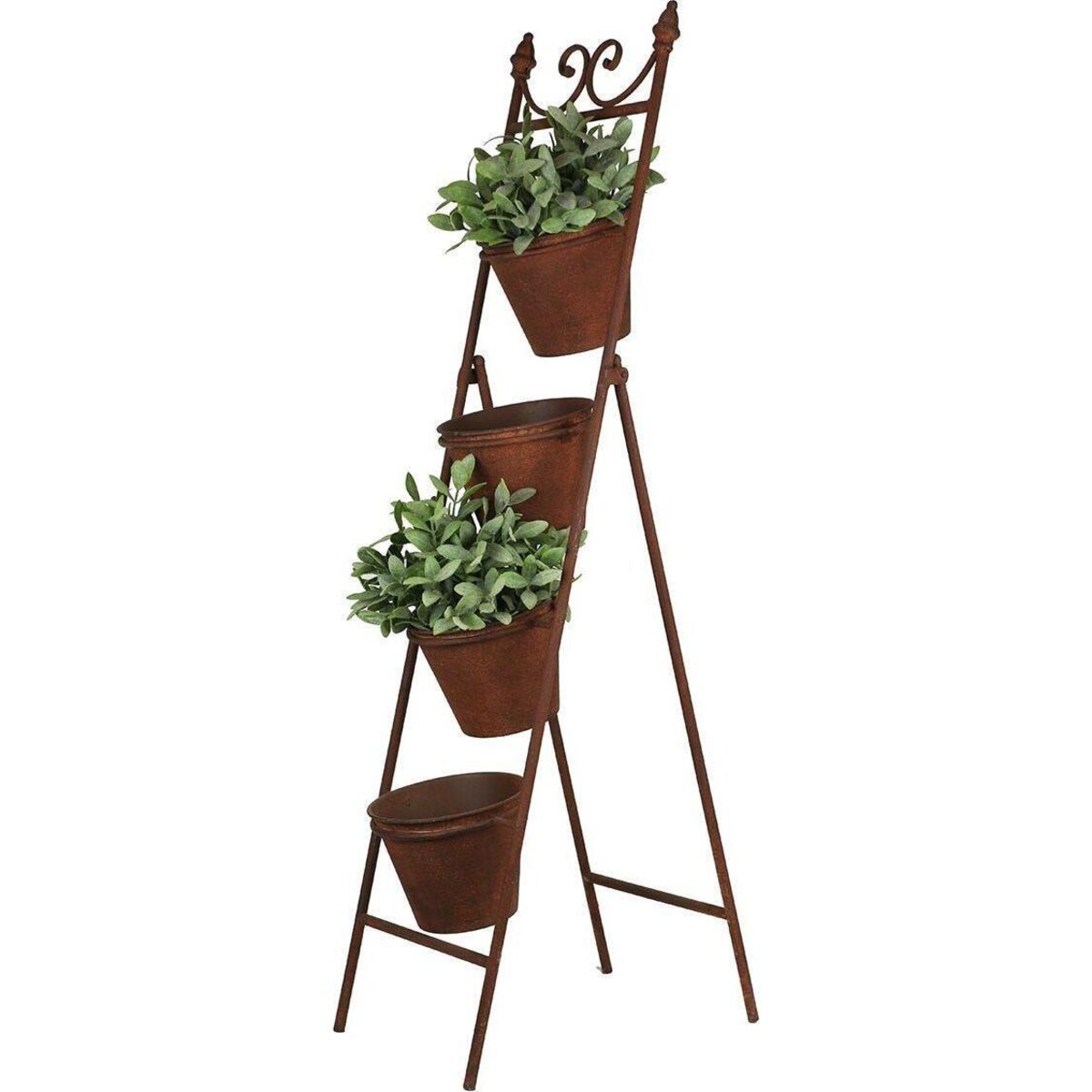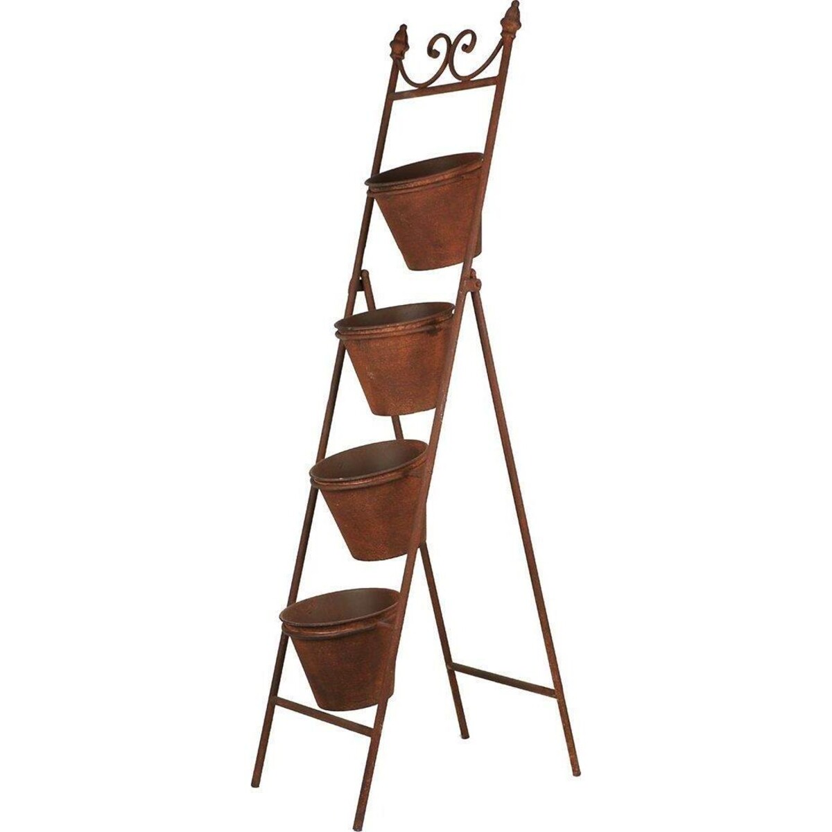 Bring the joy of more greens in the interiors which will help you redo the look of spaces with the help of your greens and your potted plants. Sometimes placing houseplants on the floor is not such a great ideas they could be messier and one cannot see each plant to the best of their advantage. They get hidden in the foliage of others. Give each plant a well deserved space and display them in great style in this four level pot holder. The entire piece is designed from metal and has been given lovely rusty brown shade that adds more to its look. Balanced well and has this pretty little scroll design on top to give t very vintage feel. The stand is about 95 cm in height which makes it compact enough to be placed in any space in the outdoors , entrance of your house or even the indoors. The four buckets are large enough to hold large sized planters. Easy to place and easy to remove, your plants can now seriously contribute towards the décor.