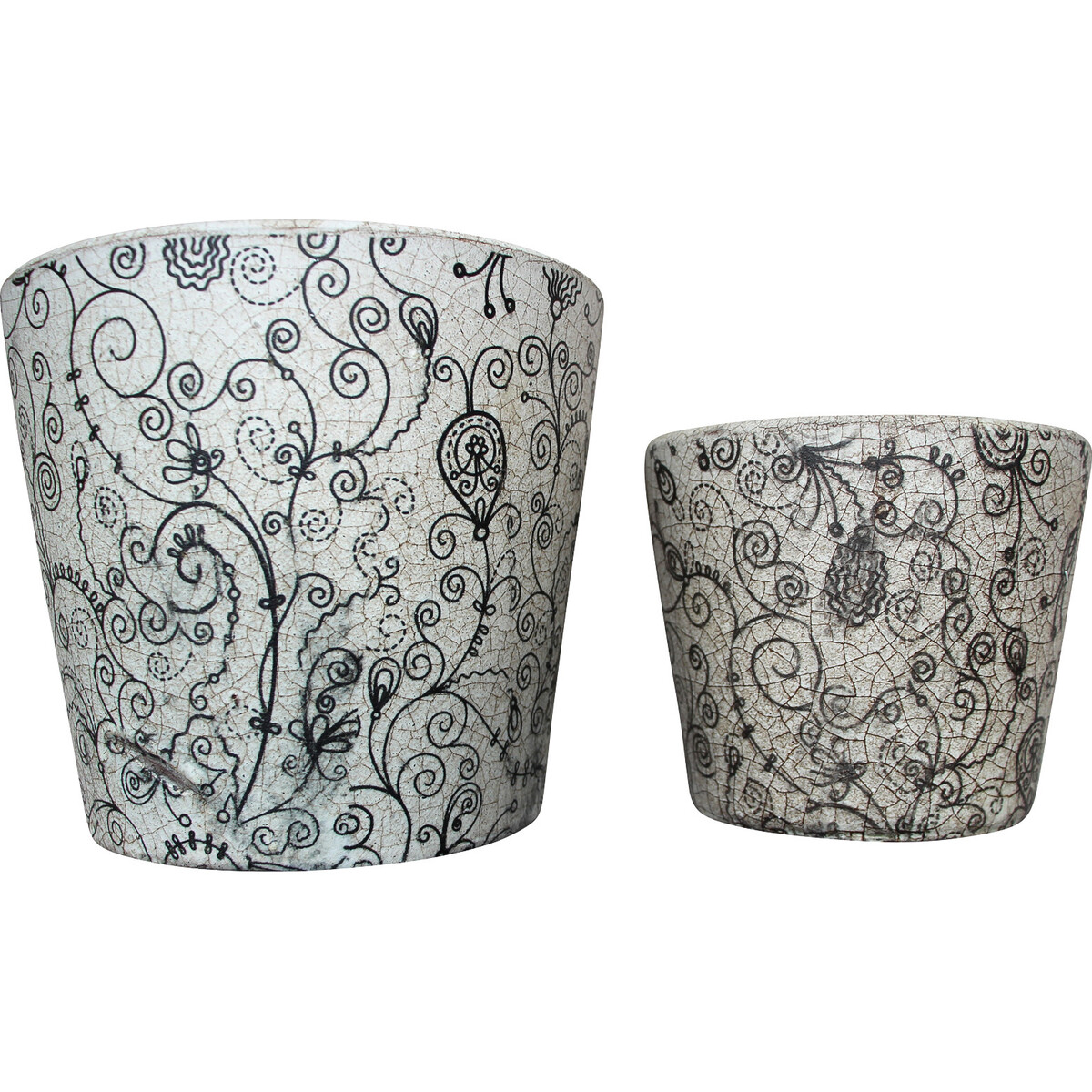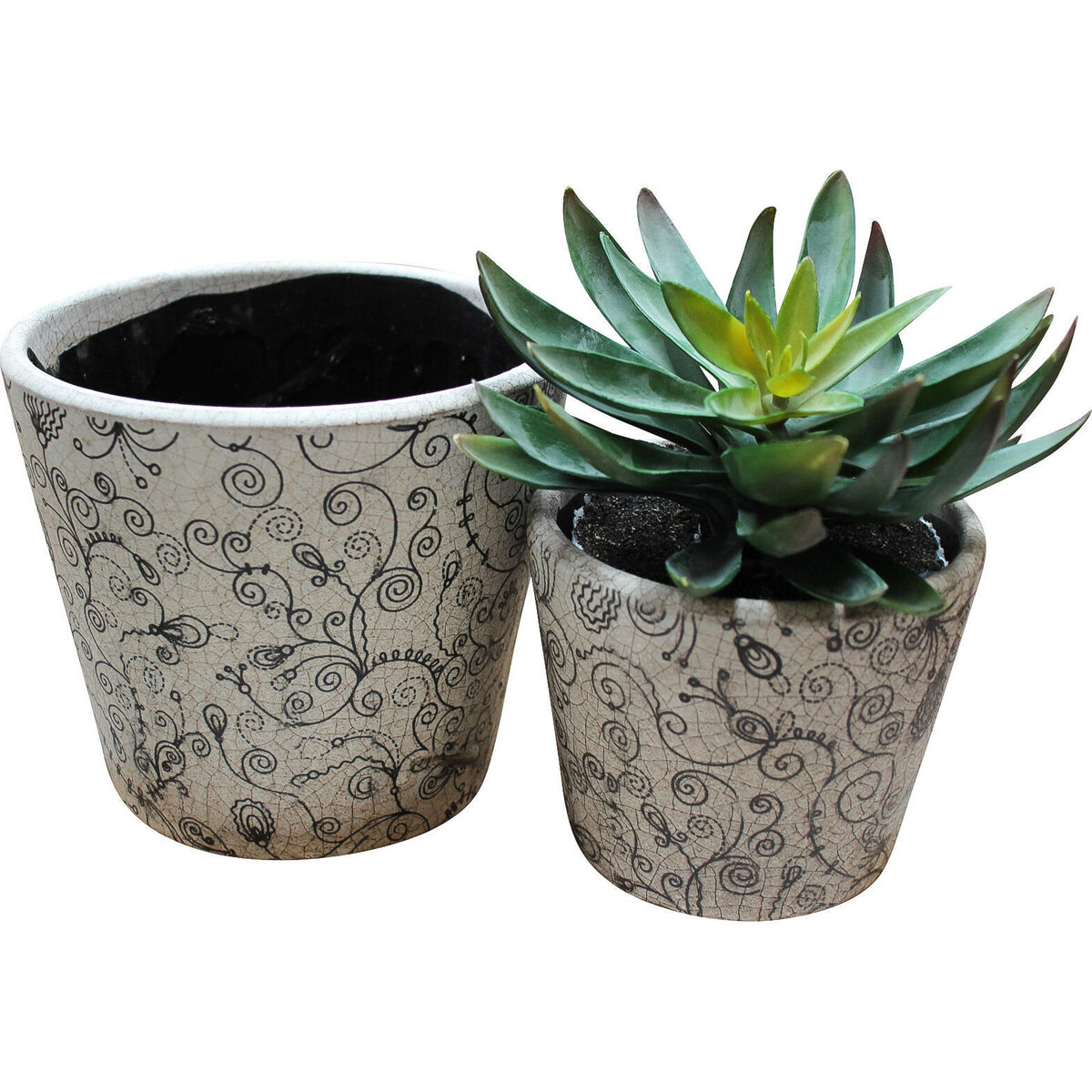 With a stylish design of swirls, a vintage-feel mosaic background pattern, and durable glazing this set is a true all-rounder! Your customers will love their free-flowing design on a textured organic surface making it a great quality accent piece. Plants are not included with this set and they look handsome even without plants in. Place one on an accent table in a living room, bedroom or entryway for a laid back vibe.