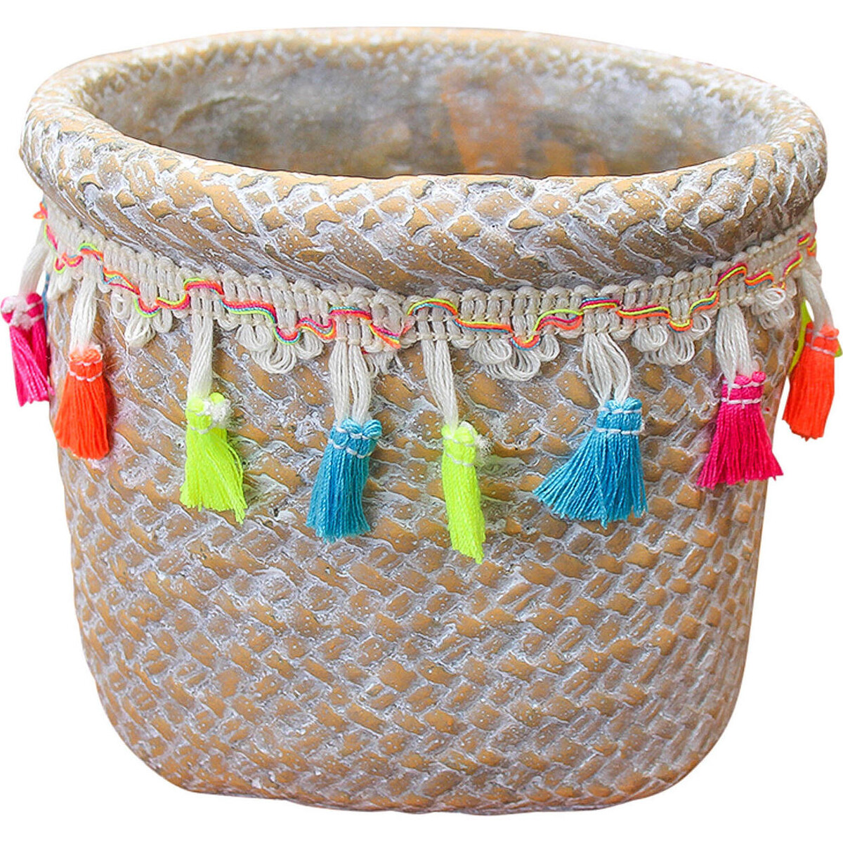 Measuring 22cm in diameter and 17.5cm in height, you can not only use this versatile piece to hold your favourite plant but also to store other items like trinkets, remote controls, tissues, notepad, keys and other items in the living room or cosmetic items on the dresser or in the bathroom. Each large pot in this collection along with its smaller version that is also available on LaVida is completely handmade, so every item is unique. There are slight variations and a distressed finish in each pot due to it being handcrafted.