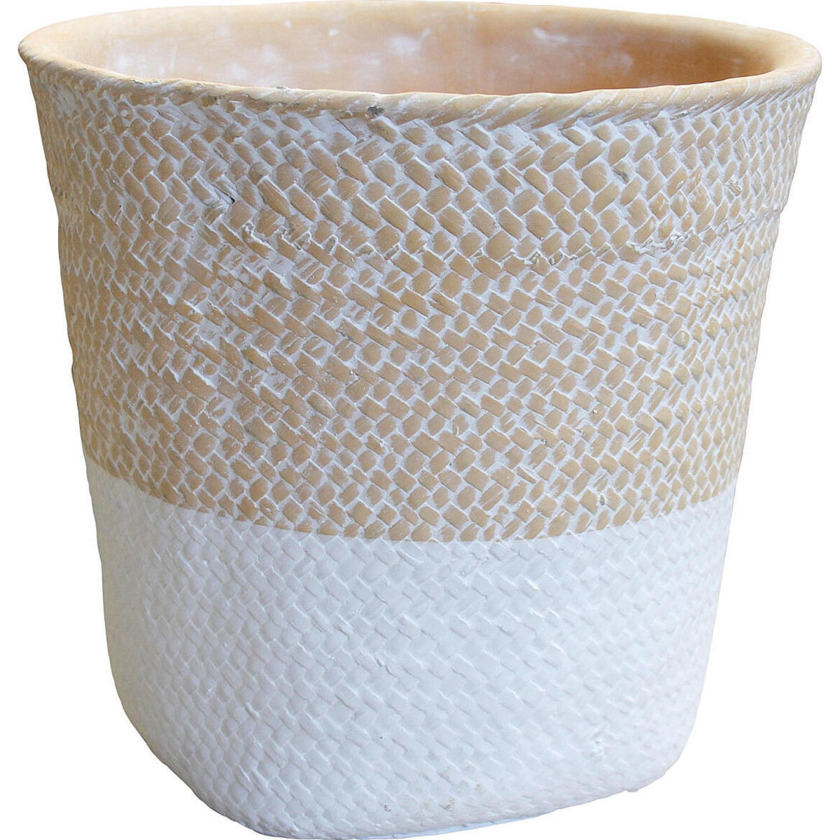 Simultaneously utilitarian and eclectic in design, this cement pot is a must-have for bringing the beauty of the outdoors to indoor spaces. The base is white with a light beige top having a pattern that gives it a raw texture and colour adding another layer to the design! This concrete planter is a lovely size of 22.5cm diameter and 32cm height making it the perfect home for a snake plant or a palm tree! Plus, this versatile design can also be placed outdoors to complete an existing garden arrangement or to add some greenery to a patio or porch display.