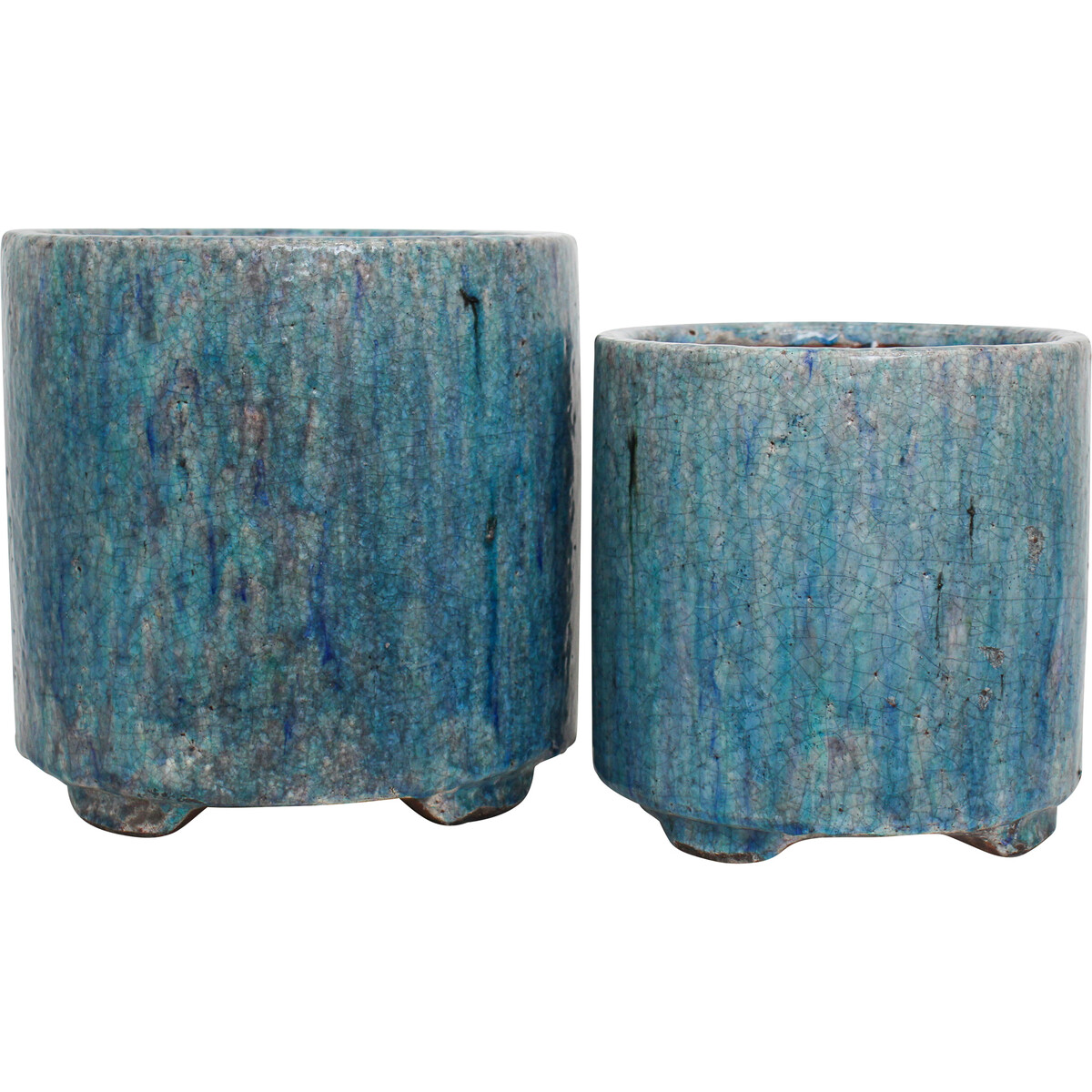 The Pot XL S/2 Sodalite is a lovely set of two planting pots both of which takes interior decoration to the next level given its innovative design and compelling visual allure. Both planters are moulded using high grade terracotta material in a vertically inclined dimension. Both planting pots also have a stout pedestal base while its exterior is beautifully glazed in cool shades of different colours. The set consists of both large and small sized pots.