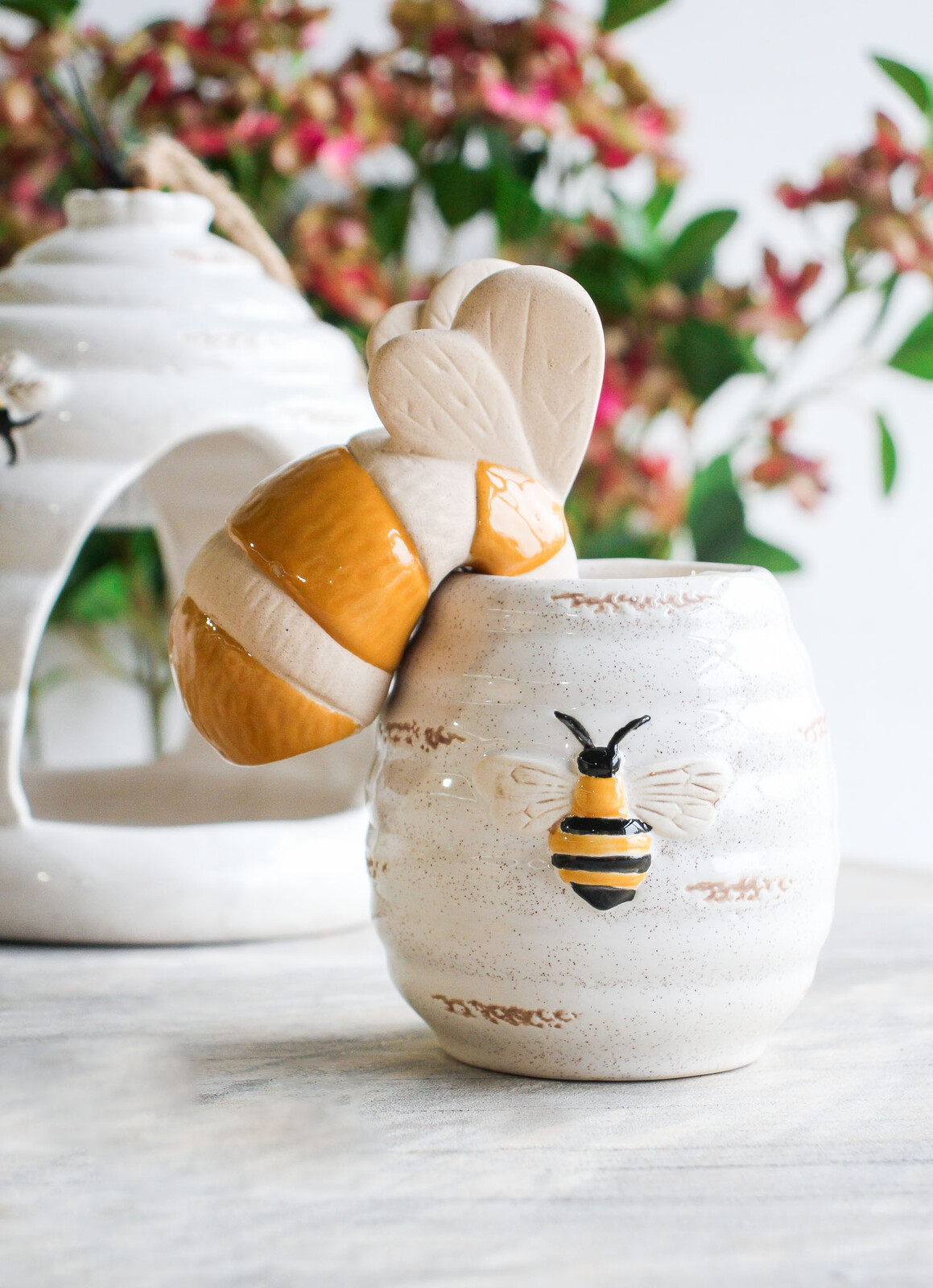 Bee-autiful. This Pot/Plug Bee Rustic White is such a simple little jar, but with a whole lot of whimsy and charm. And you know what else? It's functional and adorable and a real catch-all jar for anything and everything - little sweets on your coffee table, maybe some cotton tips on your bathroom counter, paper clips for the office desk or just as decor anywhere.