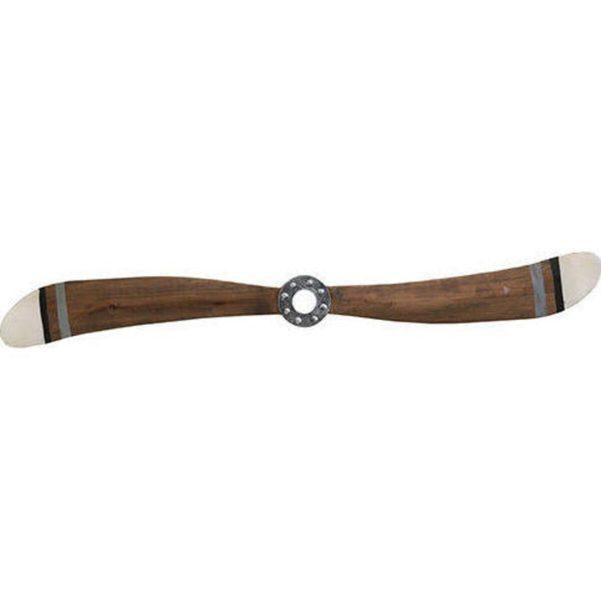 Retro chic is truly the flavor of décor in the preset times and doing a great job with ideas is Lavida that brings for its customers and buyers a unique set of propellers for the wall so that the aviation themed homes could have a more extraordinary look in their homes. Made of metal, yet given the typical wooden shape with tips in white and a stripe in bold colour. The propeller could be teamed up with a smaller one - and placed on the wall one on the other - which would make it jut out and if placed one above the other too, the look would be stunning. The rivets, the smooth curve of its aerodynamic fins and the colour that spells antique wood, will make the wall come alive with the fresh new feel reach higher with propellers on your wall and one can almost feel like you have raise the bar much higher in décor standards. The larger of the two propellers is about 140 cm long and 13 cm high.