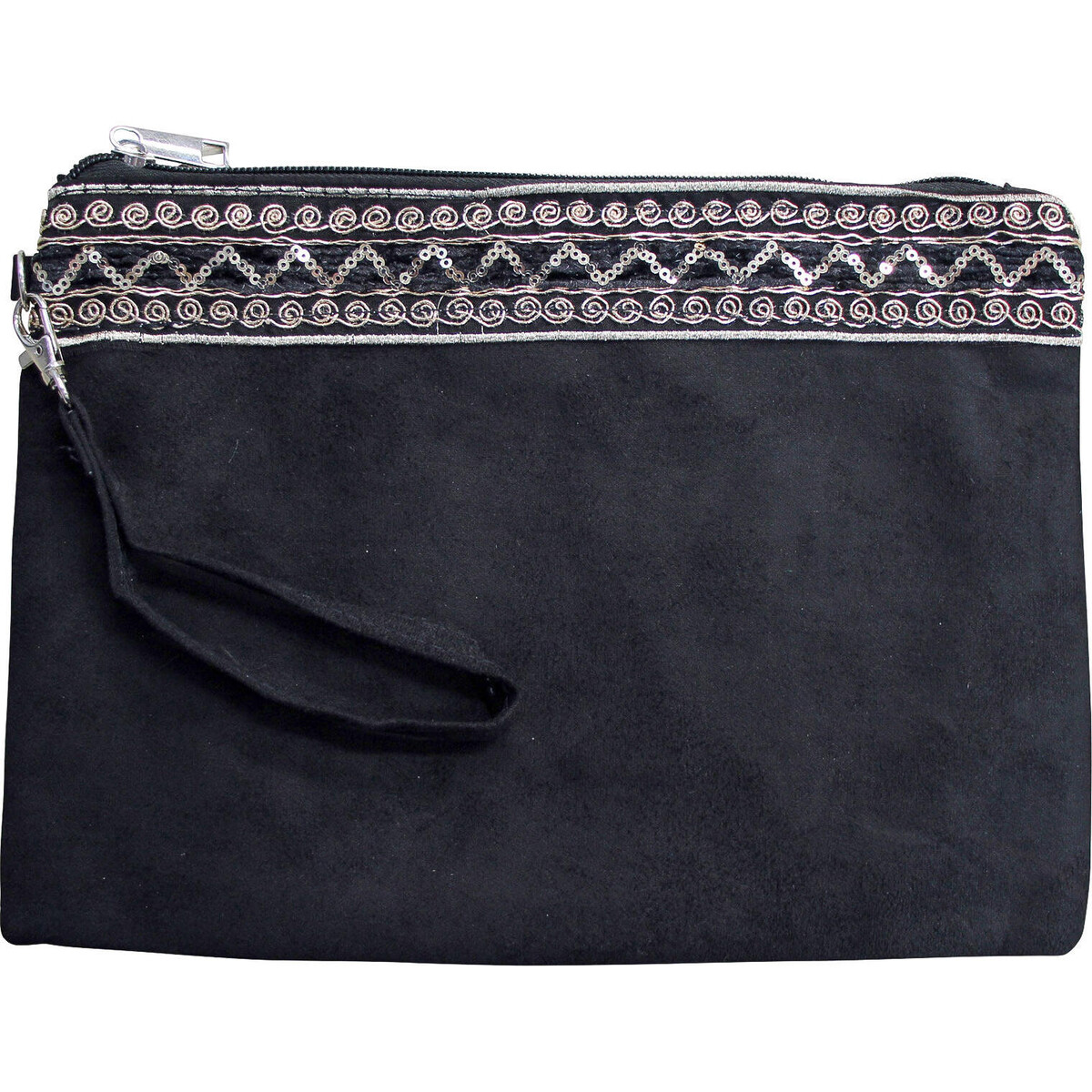 The design is elegant- a dark coloured fabric pouch that has been zippered o top-given a loop on the side to help you swing it from your fingers or your wrist and to grip it well when you need to swiftly access your tiny possessions. A perfecta addition to larger bags that hold your small article that usually get lost in the larger recesses of larger day bags. Keep your trinkets keys, cosmetics or currency -or any such thing that usually gets misplaced. Created keeping I mind the desire you have for thongs ethnic yet chic. The little border made from white coloured thread embroidery give sit that tiny bit of detailing adding to its beautiful looks. The pouch is large enough to hold most of your day's needs-be it the pill you need to pop at 10 in the morning in office or the lipstick you need to refresh during your date-it will keep them all safe and sound inside has one large compartment and the material used for its construction is sturdy enabled to withstand much handling.
