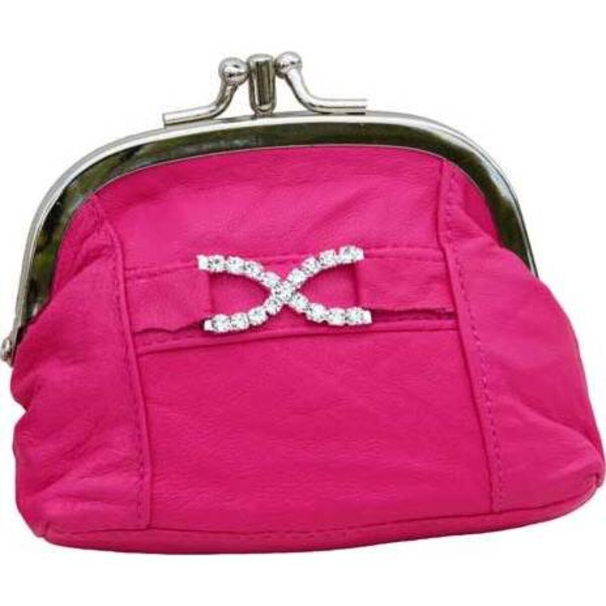 A pretty little purse in the most vivid of pinks that can give a dull dress get its much needed colour pop. Would be loved by those who keep their purses well organized and may want to use this one for keeping their change or their keys. Maybe carried solo on evening when one likes to keep it light and airy .A pretty diamante design on the frontage gives the purse its little extra sauciness. The seams are neat as is the manner in which the metals rims have been used to give the two purse flaps a great finish. The leather is smooth and soft to touch and has this slight grainy appearance that adds more to its class. A well crafted piece, irresistibly feminine, that would add just the right sauciness to make a simple dress look special.