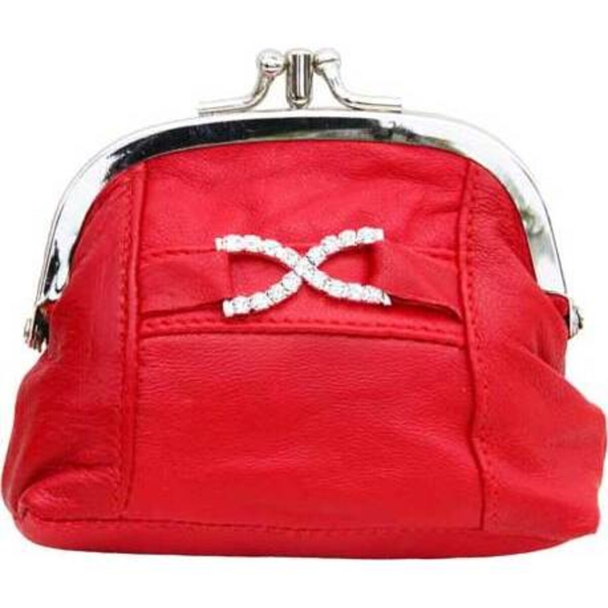 A marvelous?Ǭ†leather click purse that can be carried as a clutch purse as well as an insert along with a larger purse to carry small change. The neatly curved shape is emphasized by seams that give more definition to it ; the smooth feel of the material used, the metal edges of the flap that close with a smooth click, are all quality features that make this purse hard to resist. The purse also possesses the feel and look of real leather. The steel clasp is tarnish resistant and strong with smooth edges. The diamante detailing is delicately placed in the frontage of the purse and adds the necessary glamour to the look. The stitches that run along the purse are neat and well aligned and structured. A perfect pick for ladies who like to keep their purses organized or those who like to carry nifty little numbers instead of large chunky evening purses. A lovely gift to give for all occasions.