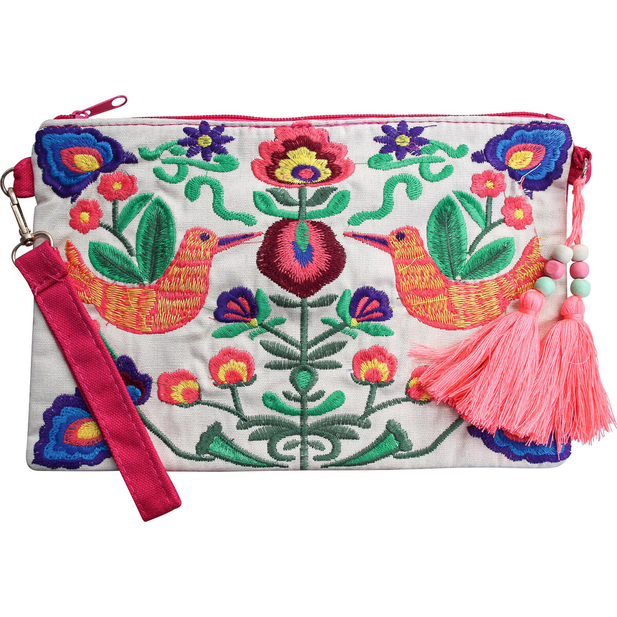 Combines well with all kinds of clothing - be it an evening dress for more formal occasions or your garden party in the morning - be it the day's outing with your friends or simply to stowaway your extra make up items - there is always a need for something as versatile as this purse made from sturdy cotton fabric - it has this delightful looking multicoloured thread embroidery that makes this such a wonderful accessory that will easily team up with solid colours in your clothing or even with prints. Be it denims or formals - carrying this purse in your hand will lend a touch of chic folksy glamour to your look. The zippered top makes accessing the items inside rather easy. The loop on the side and the tassel adds to its unique kind of beauty.