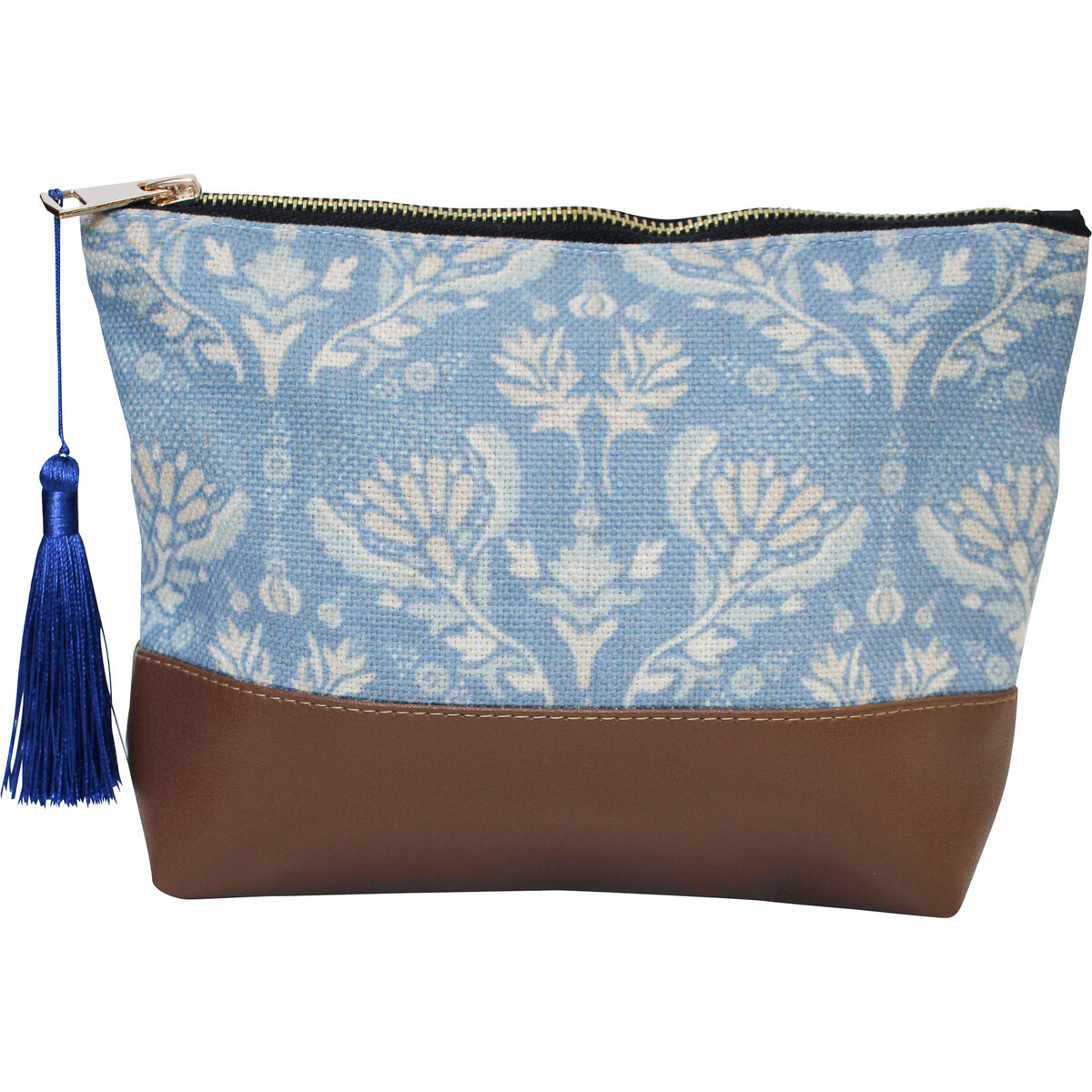 Made in a compact design as purses ought to be, this Purse French Blue is made in a dimension which measures 20 centimetres in length, 6 centimetres wide and 15 centimetres in height. It is made through the use of high grade polylinen material in combination with polyurethane (artificial leather). It is made in a zippered design in such a beautiful pattern such that the zipper has attached to its base, a colourful navy shade of blue tassels which help compliment the rather pale shade of blue floral pattern present on the body of the purse.