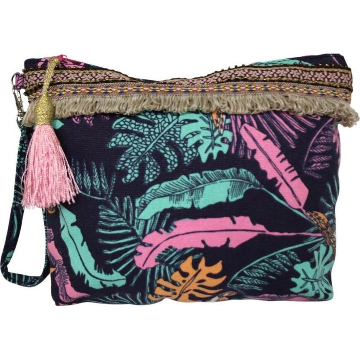 It has a loop on the side to assist you in holding it well-you could simply slip it on to your wrist-the lace trim on top coordinates beautifully with the colour palette present in the print. The fabric is sturdy-made of polyester which help make it retain its bright shades. The trim of brown colour makes it all the more Bohemian looking. The splash of bright colour in the print fall on the dark coloured backdrop adding to its attractive bright kind of presence. The zippered top is completed with a tassel in pink that contrasts vividly with the print and the dark shade of the purse. Will complement most of your dresses especially if you wear plain coloured clothes -the print will look all the more appealing. The length of the purse is all of 25 cm and its height is 18 cm making it large enough for holding most of your tiny possession for the outing.