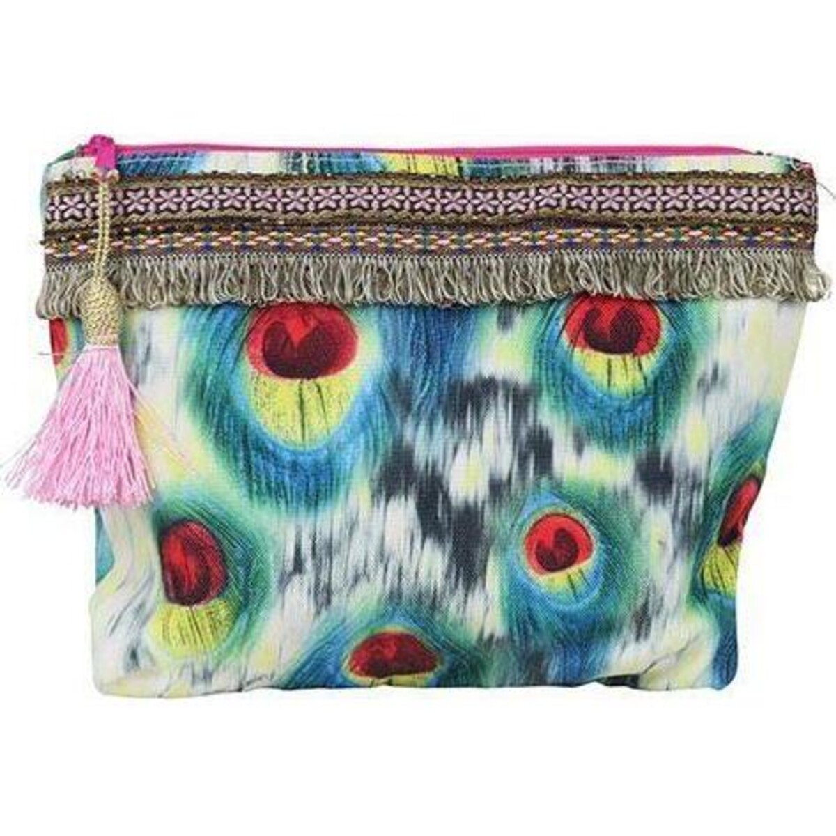 Holding a smart looking purse in hand can certainly make that all important difference to the way your entire look pans out and when the look is as appealing as this peacock pattern purse that is 25 cm in length and 19 cm in height, the very size adds much more to its utility as well as its capacity to make an impact. Show it off like any other day bag or place it in a larger tote where you can pack in a lot many of your personal belongings. Their bright coloured exterior belies the sturdiness that this cotton fabric bag possesses. It is soft to the touch but tough as a material. The zip closure is well matched as is the coloured trim and the tiny little tassel that hangs on ones side. Use it as an a standalone accessory or make it part of your bag, its very capacity and startling good looks will be loved by all who care for well organized bags. Make it count towards your looks and rake in all the compliments.