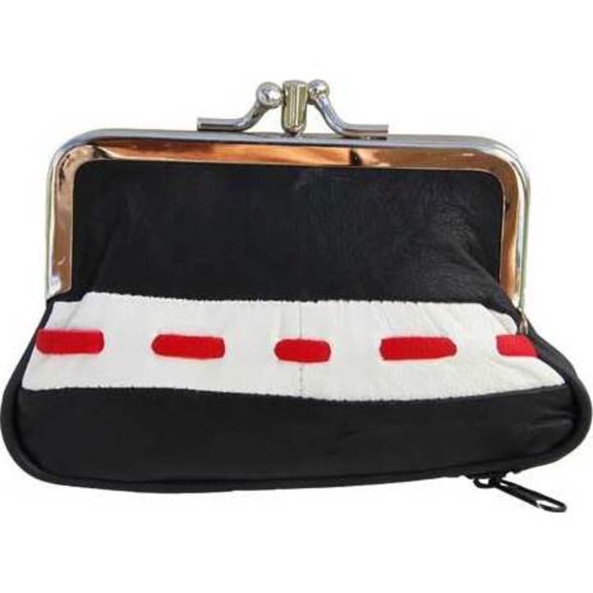The 14 cm length of the purse and its 9 cm height makes it just the right size to be held as an evening clutch purse. The soft leather exterior is fine and smooth and finished to a perfect dull polished look while its clasp and metal trim along the flaps makes it look stylishly from the 70s. A smart accessory for those who like the boldness of colour play as well as the simplicity of design that makes a great statement of style. The purse has a strong metal clasp on top and zipper at the base to keep the small change in place. The metal hardware used is tarnish resistant and sturdy. The detailing with white and red is neatly sewn with no frayed edges anywhere. A must have for those ladies who like to carry small but stylishly fashionable clutches that have a retro feel to them.