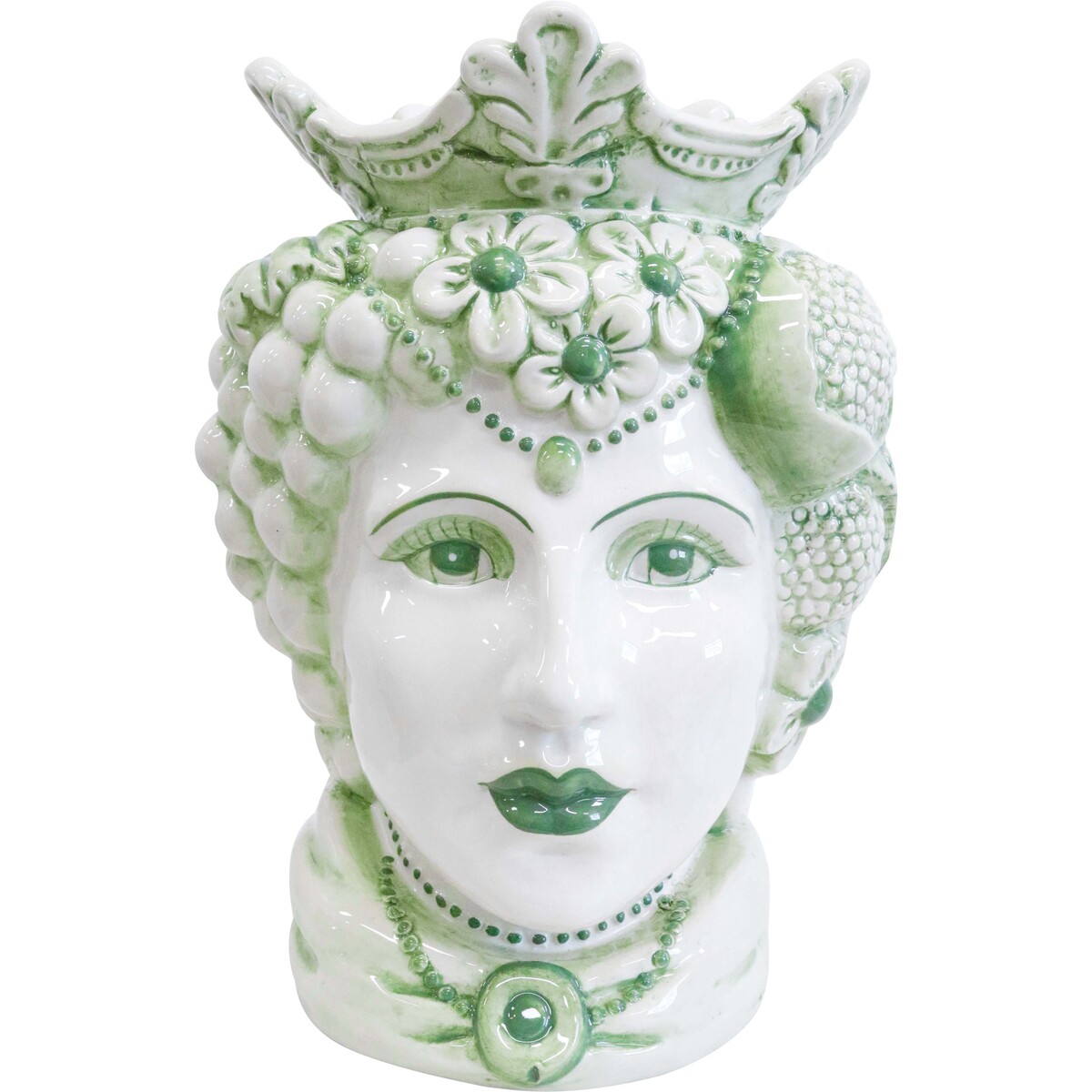 We have to say, the Queen Large Vase Palermo is a true conversation starter - and a standout accent piece for home decor. This generously sized vase, measuring 21.1x21x29cm, is all about visual drama and a playful twist on classical Italian pottery traditions. It's an eye-catching centrepiece on dining tables, credenzas, mantels, or even styled in store windows for a head-turning display. Hand-glazed in subtle white and mint hues with delicate crown and necklace details, each vase features its own subtle variations and natural imperfections. Not two are ever exactly alike - that's what gives them that old-world artisan flair. The ceramic body is durable and glossy, but it’s those slightly whimsical facial features that win customers over. It’s hard not to smile at this one. This vase sits easily alongside rustic Euro farmhouse chic or bright modern spaces. Pop in dramatic dried stems or leave it empty as an artful sculpture - either way, we think your customers will love it.