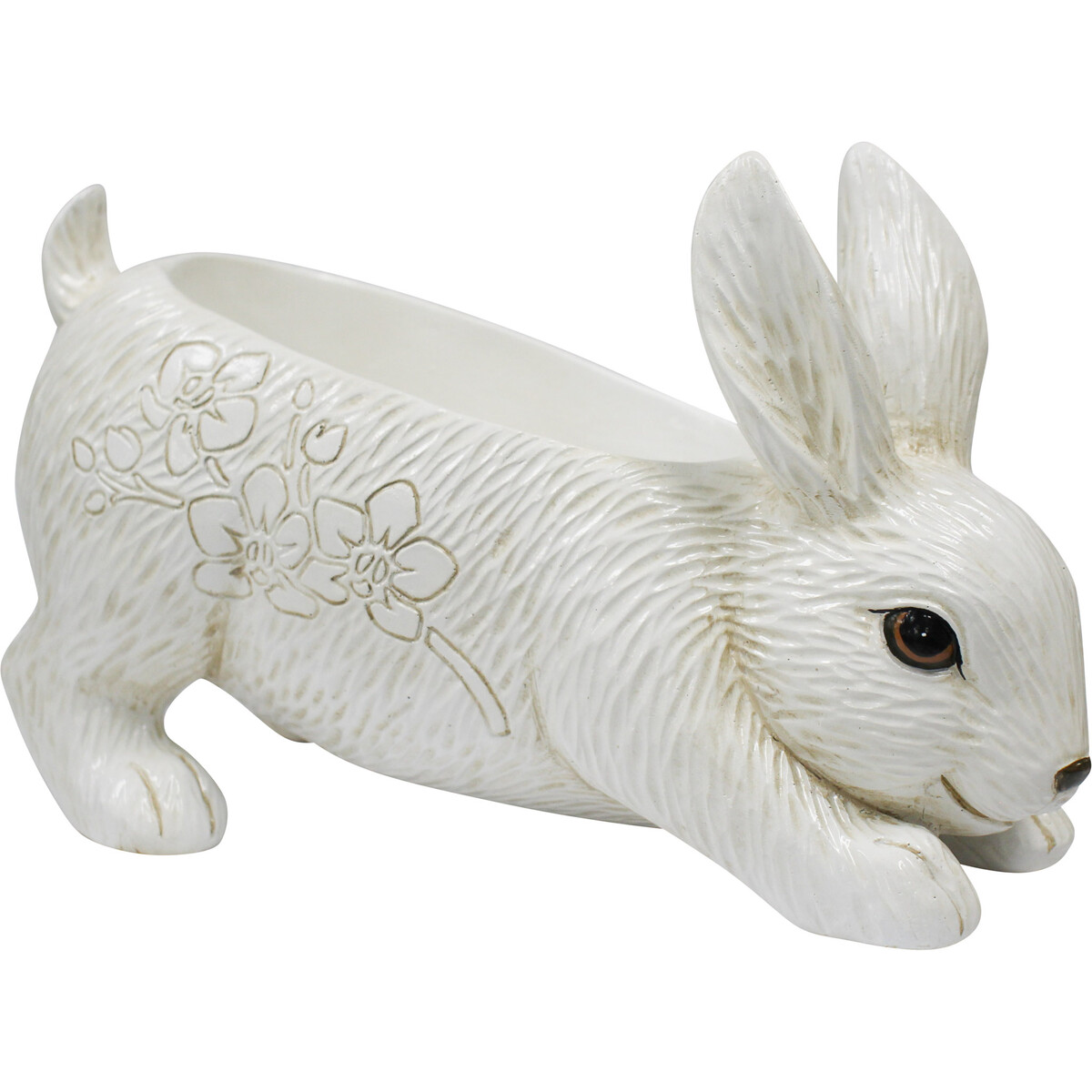 Exceptionally retro and elegant. Homeowners can opt for Rabbit Planter to adorn their front porches and entryways as an upgrade for boring planters. Paying homage to its nature-inspired design, this is a premium alternative for homeowners who prioritize surrounding themselves with Nature's beauty. With a slick sheen and spectacular style, this resin planter is perfect for potting flowering household plants and sprucing up the aura in the entryway, front porch or lawn. Likewise, it gives an eye-catching appeal when it is mounted on a table, countertop or mantle. On grounds of it being handcrafted, each piece has its uniqueness with a slight variation.