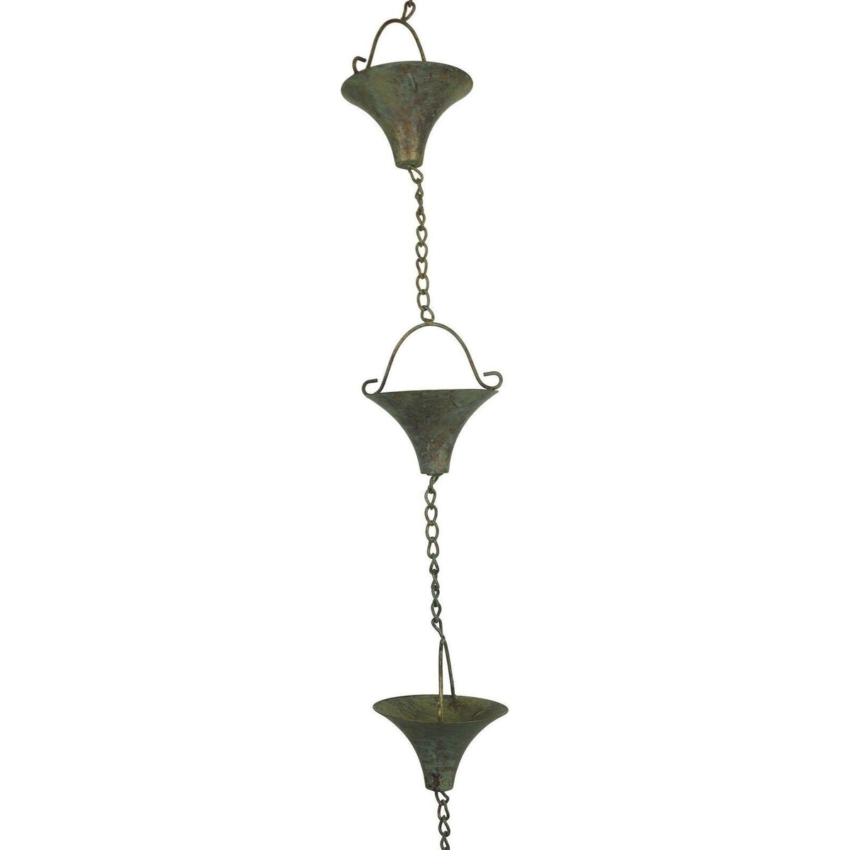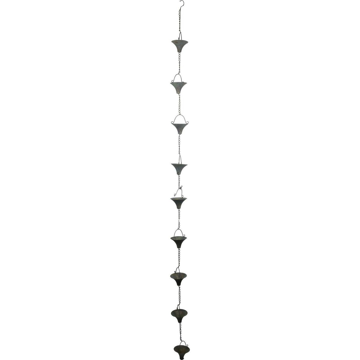 Who has not been mesmerized by the little pearl like glittering drops of water as the shower slows down? Catch this in action by adding a rain chain to your garden and see how the top most little vessel fills up to the brim making the water drop, like a little shower of pearls down to the next vessel and the chain continues till the last little receptacle. Watch the drop by drop action of the water as it cascades below. This is a lovely little accent made of metal that will lend your pretty little garden more charm. Place it at windows if you so please or on little boughs and branches or as they functionally are supposed to perform the job of down spouts or gutter spouts. Whether used for guiding rain water down to a storage or as an alternative to the down spout , whether this pretty little chain is going to be hung it will surely create a lovely water feature to add to the space's beauty.