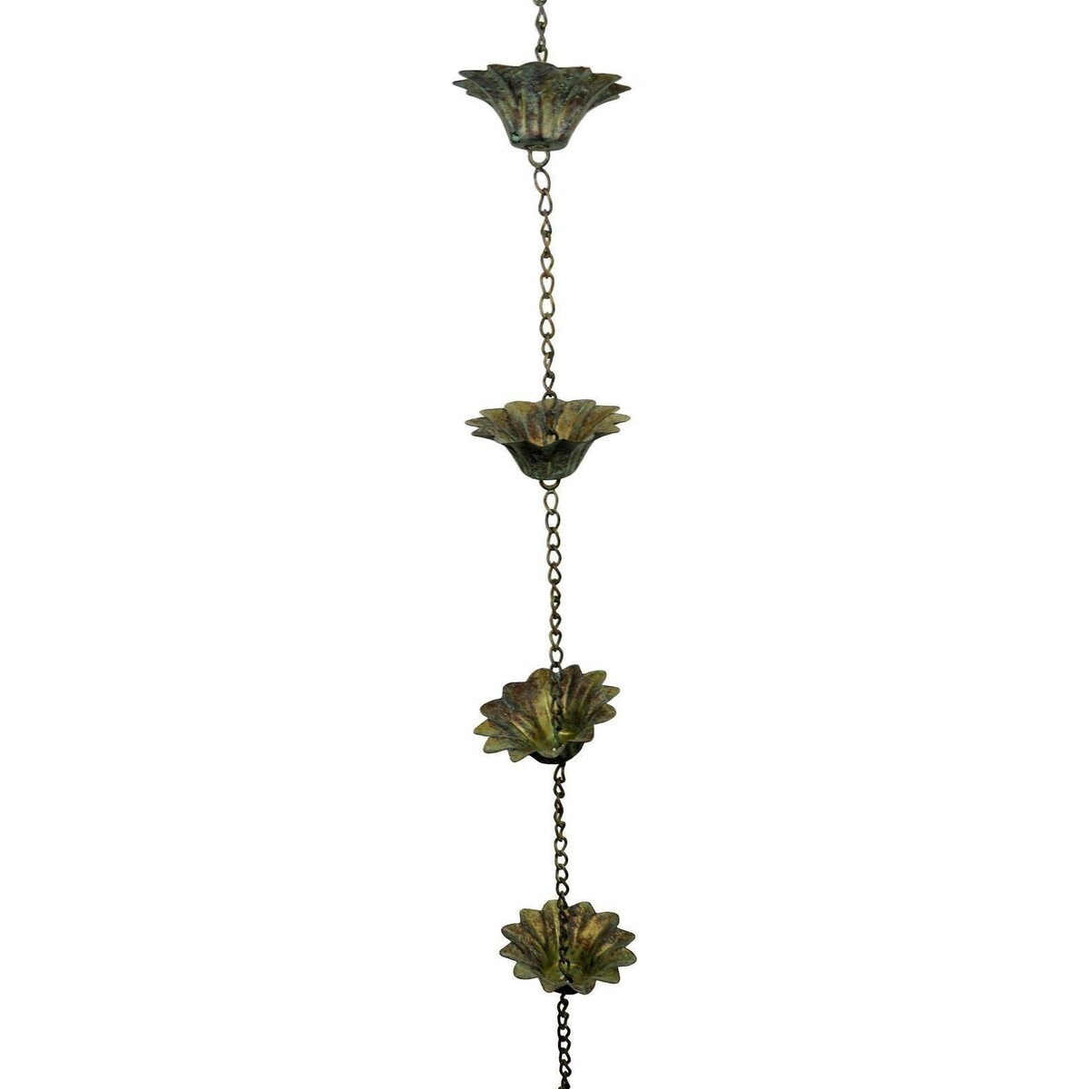 Make a water feature come alive in your home and garden by simply placing this rain chain that is seen functionally as the alternative to guiding rain water from the shade down to the gutter without the usage of spouts. While this feature will lend a more aesthetically pretty look to your garden and the window area. Use them in several places and see how the water transports down its 210 cm length - from one flower cup to the next till its reaches its destination. The lovely dripping cascade of water is especially pleasing to see when the rain slows down and the trickle effect can be seen more clearly. The metal made chain is sturdily crafted with thin chain running through the entire length connecting the tiny receptacles of which there are almost a dozen. The burnished gold coloured little flowers are large enough to hold and release a lovely looking trickledown effect that will be a pleasure to see. Add this ancient Japanese way of making garden and the outdoor more pleasing and peaceful.