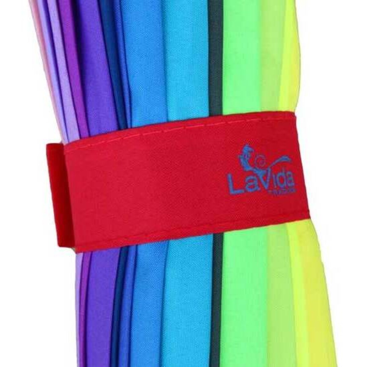 Rainbow Umbrella is a resplendent umbrella that reflects all the varied colours present within the rainbow. The handle utilized is dark in tone and hooked, offering a stylish contrast to the flamboyant canopy above it. This product would make a lovely souvenir for a wife or spouse to mark a marriage anniversary, birthday or other kind of notable occasion. Rainbow Umbrella exhibits a vibrant nature which makes it ideal for venturing with outdoors during sunny days in particular. It has a large canopy which enables it shield a couple walking together in the rain and is simply a great item that suits all seasons.