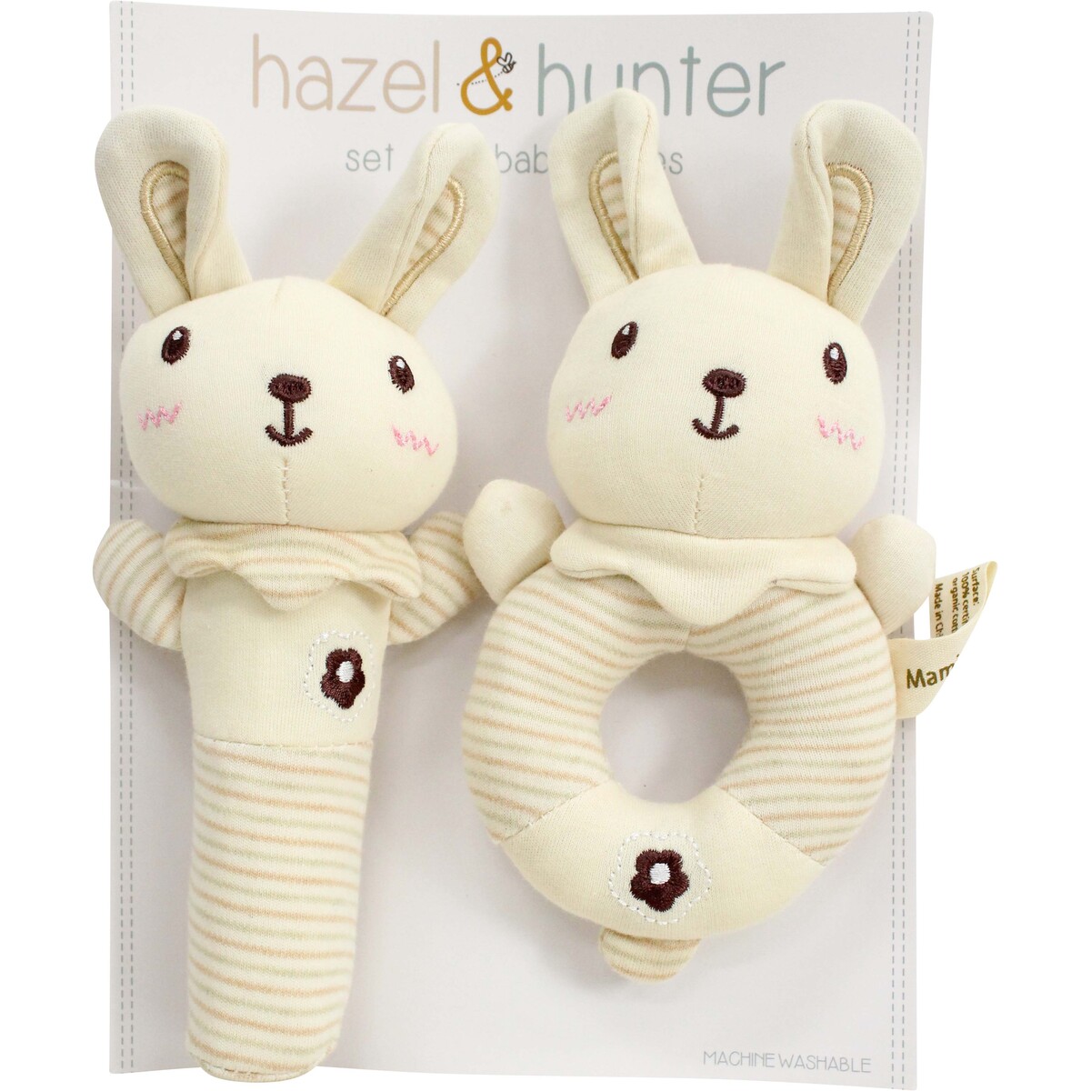 Both rattles are made from polyester and plastic, machine washable (absolute relief), and come with packaging - although it isn’t classed as part of the product and can’t be claimed upon if damaged. The stick design measures 16cm long; the circle rattle is 14cm wide, both compact enough for little hands but chubby enough to be safe around newborns. That soft cream colour blends into any cot or changing table setup - not at all jarring in modern homes. We’ve found these complement everything from boho nurseries to classic pink-and-blue palettes. Easy to recommend as a display staple for any shop that wants a simple upsell near their counter or in their new baby section.