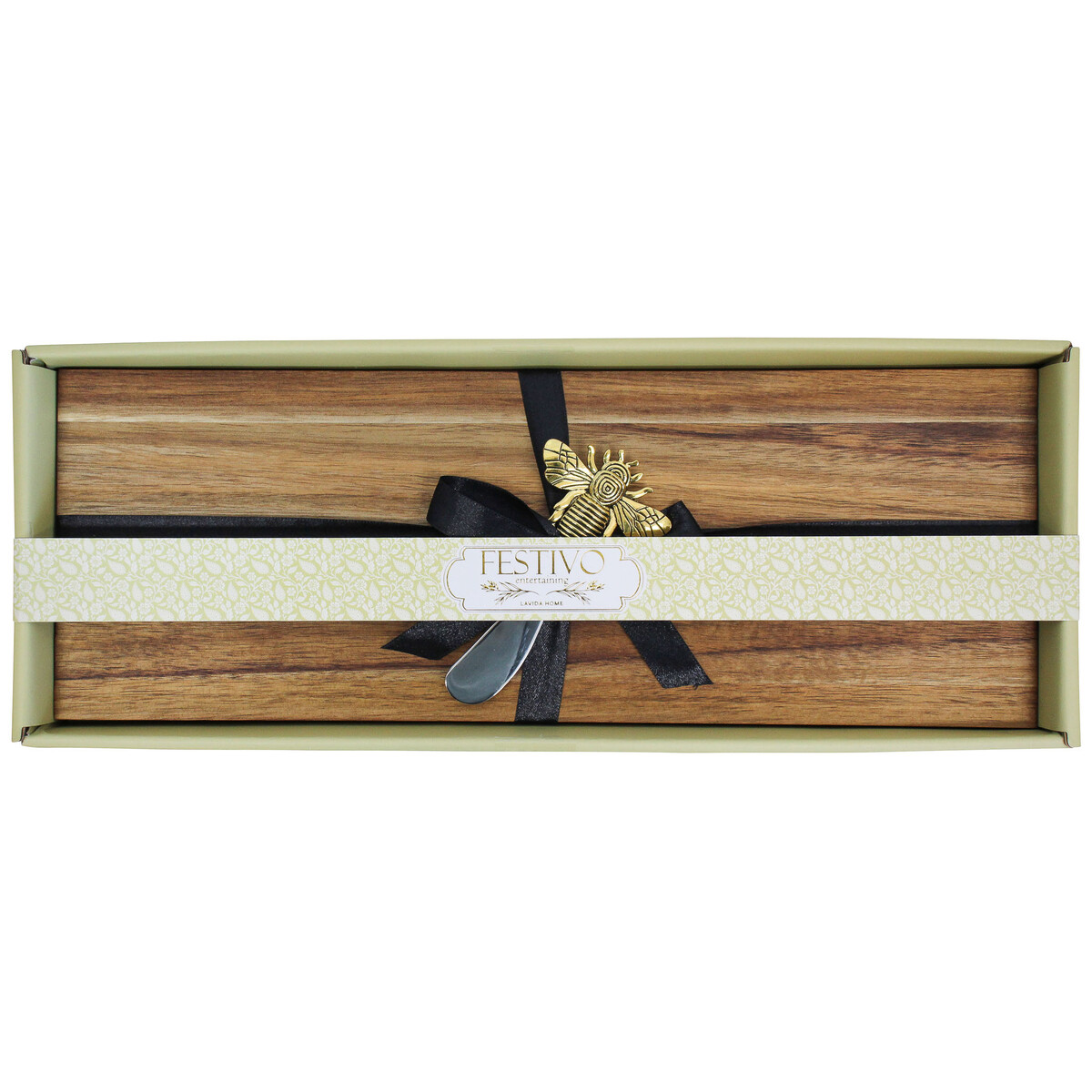 Discover the quintessential blend of functionality and elegance with the Rectangle Board & Bee Spreader Set, a must-have addition to your homewares and giftware collection. Crafted from the finest acacia wood, known for its robust character and unique grain patterns, this exquisite set promises not only durability but also an aesthetic allure that effortlessly enhances any home or office decor.