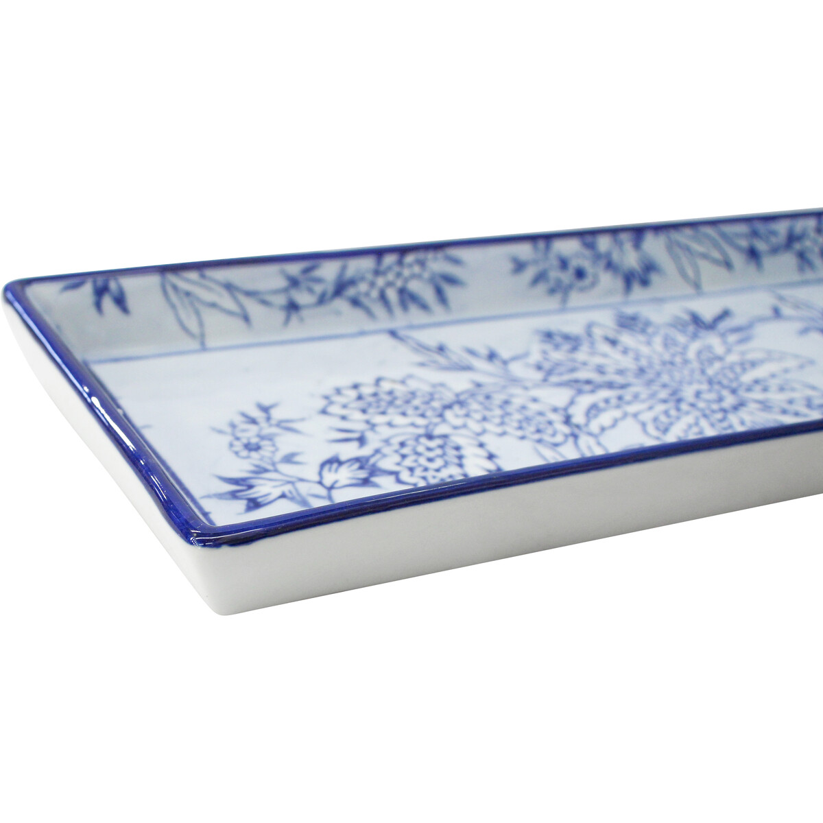 The boho tapestry platter is a combination of traditional design which has been revived in this tray cum serving platter which will look exquisite when displayed along with the rest of your porcelain tableware. Made using the best traditional methods, it has a high glaze finish, delicate blue coloured edging all along the top and a hand finished look which as to its artisanal value. It's the kind of serve ware that will be used again and again not merely for a classic good look but also because it can be as great for serving biscuits and savouries as it can be for just being an accent holding knick-knacks coffee table. Bring to your collection the Classic charm of fine quality porcelain, and serve in great style.