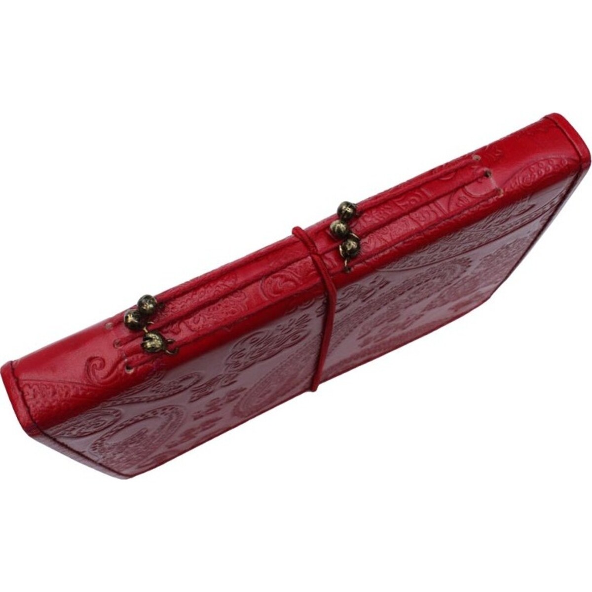 The leather covering of this notebook also artistically features an embossed pattern. The beautiful carvings create a Victorian appeal that goes perfectly well with the red theme. Another highlight is the set of little bells attached on the spine of the notebook.