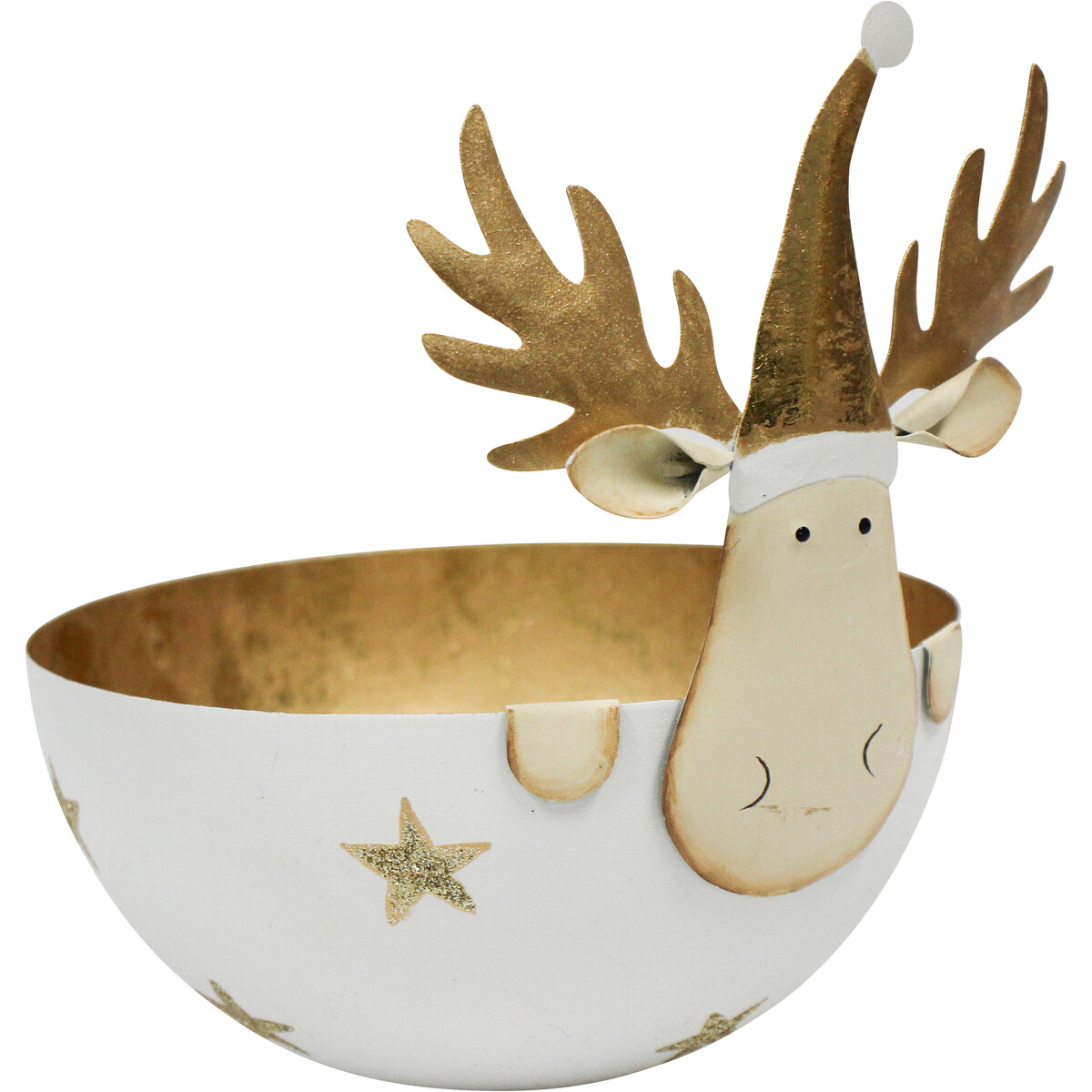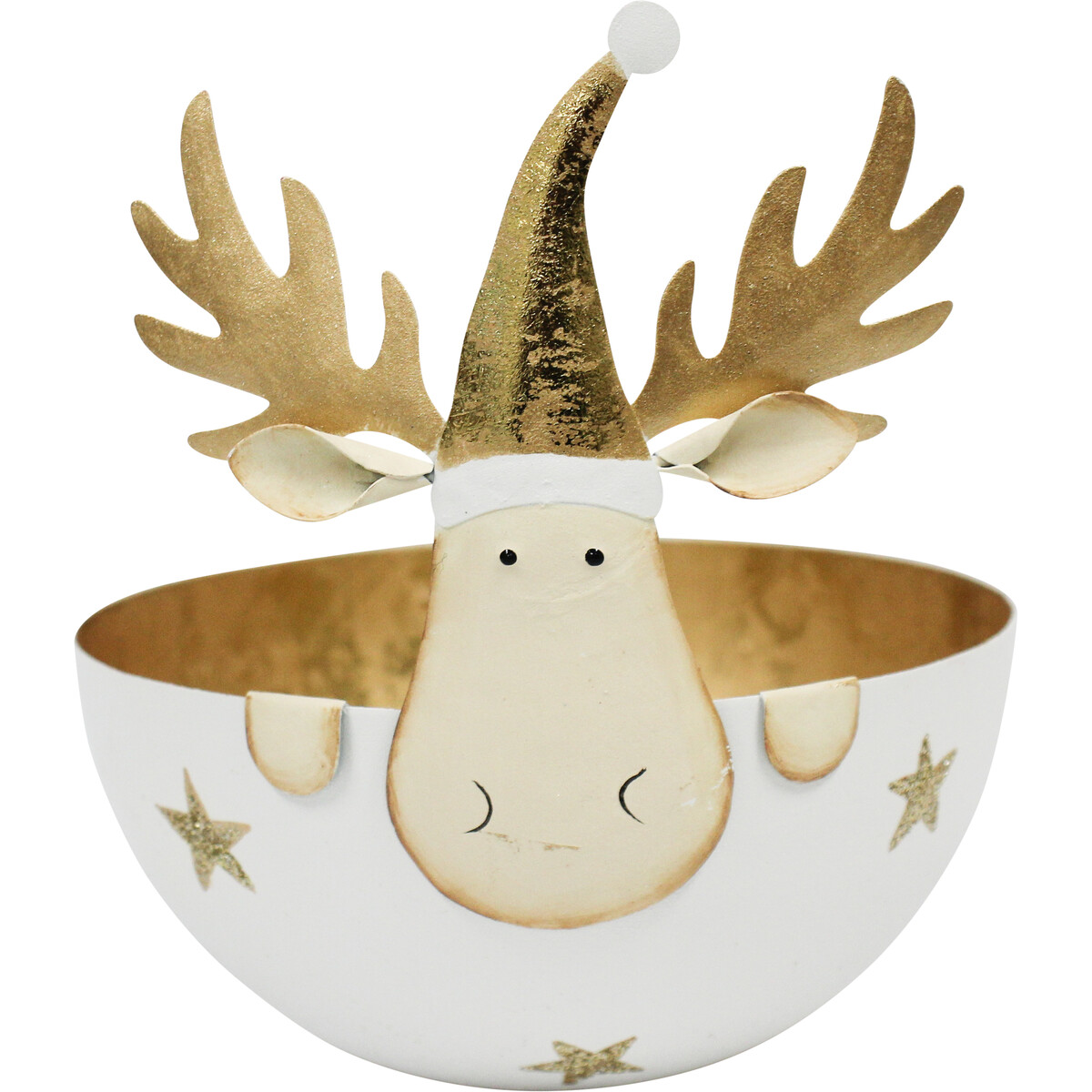 We honestly feel our Reindeer Bowl Sml is an absolute treat for retail shelves this Christmas, but it’s one of those pieces that carries just enough whimsical charm to linger on display all year round. At a compact 11x11x11cm, this little beauty is crafted from sturdy metal, painted in a warm white with gold antlers and a silly little golden Santa hat. Oh - and stars. Glittering gold stars everywhere, which does make it even more special.