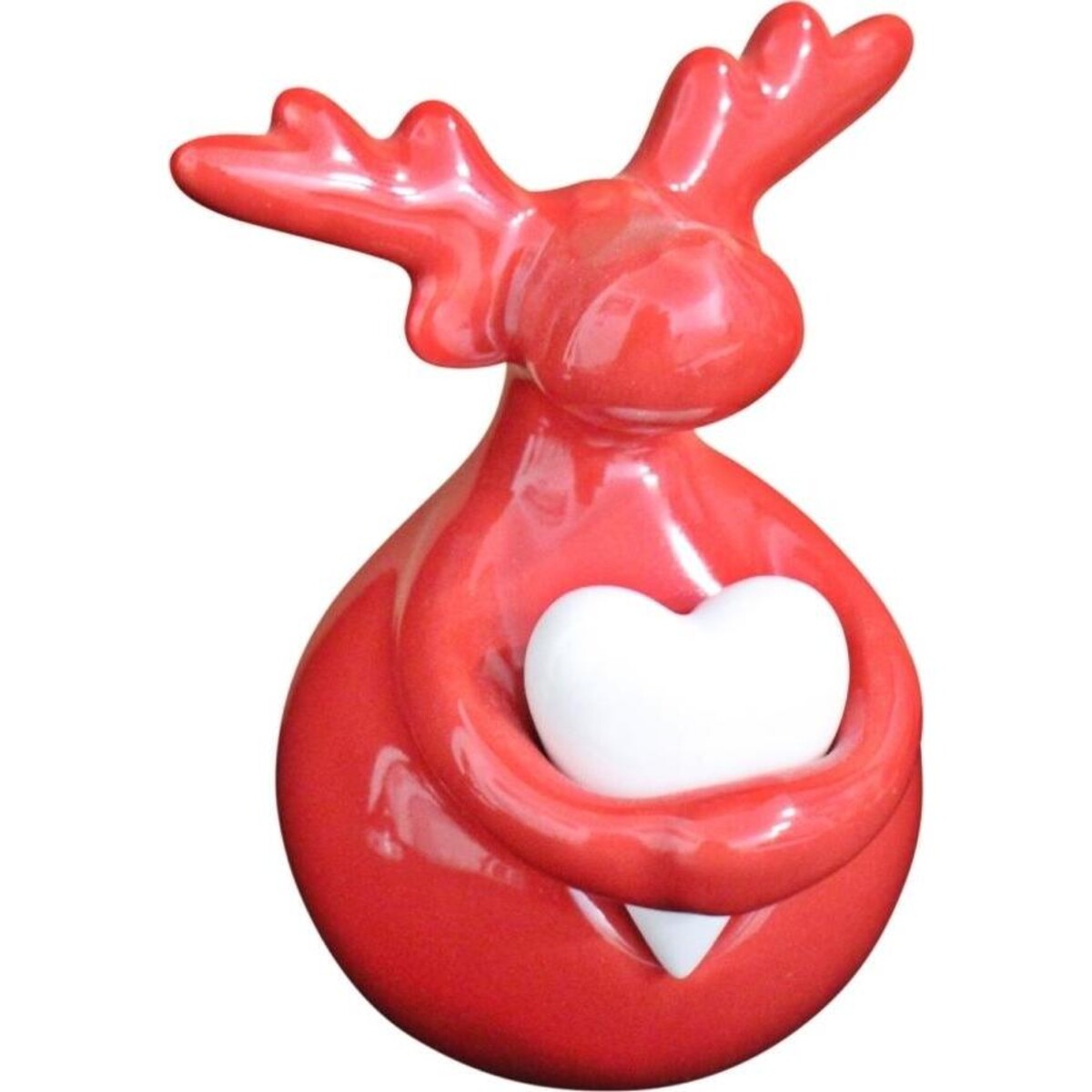 The creative license used by the artisans in making this piece is quite obvious when you look at the beauty this red coloured reindeer is. A unique design -all red, hugging the heart which is white in colour -makes for the sweetest little accent on table tops and side boards or even the dining table where you could place a tiny wrath of holly and make the also of the colour contrast. The ceramic art seen in this one is high glaze-a work of an expert whose firing technique has given it a deep rusty red and a shine that is covetable. The piece balances well on its flat base. The height is all of 10.5 cm and the maximum width of the reindeer is 8 cm. A lovely means to begin creating some kind of a table top look at the entryway of your home -maybe on the console and welcome the season with all your heart much like the reindeer that holds one such heart.