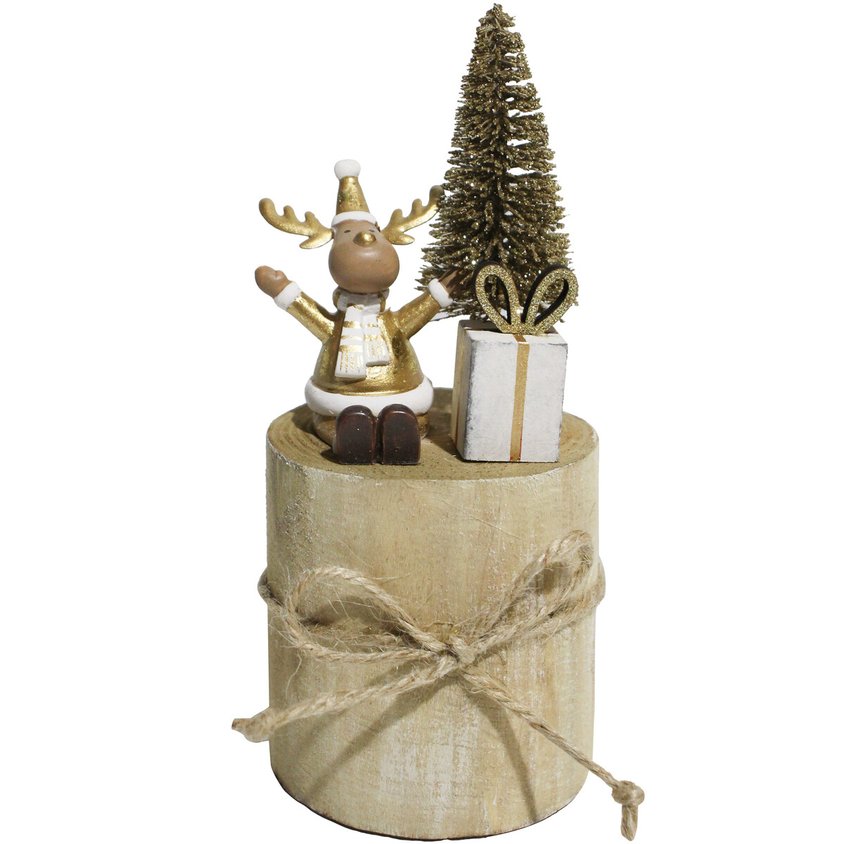 A creative Christmas ornament that features a joyful reindeer sitting on a log that is adorned with a rope bow. With his shiny and adorable antlers, this cute deer looks up with an outstretched arm and a smile on his face. He shows off his shiny outfit with a cute white muffler and a dazzling Christmas hat! This lovely Christmas ornament also features a Christmas tree with a present to add depth and character to the design. Clients looking to invite the Christmas spirit early can opt for this adorable piece. What's more, the reindeer energy will spread glee and whimsy through one's interior. It is made to lift one's mood and positive energy. Reindeer Of Joy is made from durable MDF that guarantees longevity whilst keeping its attractive appearance all year long.