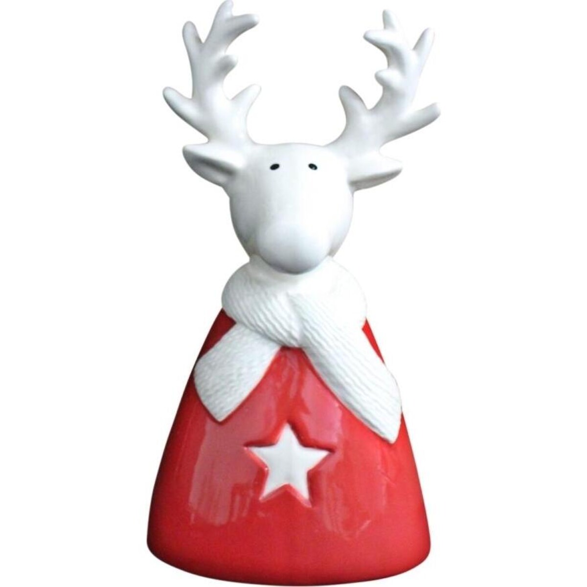 There are days of the year when your home has to be as welcoming of the season as it has to be of guests who should soon be arriving and to present your abode of love , with afresh new appeal can only be a matter of pride for you. Here is a table top accent that builds in the look of beauty on corners, shelves and even low tables with the help of a figurine that seems to have been crafted by experts who understand the art of ceramic craft. The high glaze, usage of colours the balance and the shape of the sculpture speaks volumes of the finish and the accuracy of the image created. The reindeer image wears a scarf along the neck that crosses in front-the white and red colour quite in synch with the mood of the season and one of those focal points on a table where you wish to add more of the season?s paraphernalia for more cheer and fun. 19 cm tall, the base round and flat, the antlers minutely shaped and beautiful in their look-this is a lovely means to adorn your home in simple yet evocatively Christmassy way.